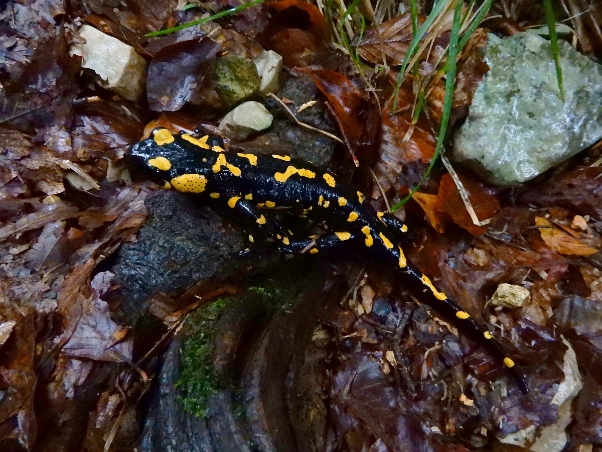 Salamandra salamandra 46, Vuursalamander, Saxifraga-Rudmer Zwerver.jpgPoisonous Fire salamander in its natural habitat Toxic Fire salamanders (Salamandre salamandre) live in central European old deciduous forests and are more common in hilly areas with lots of dead trunks.