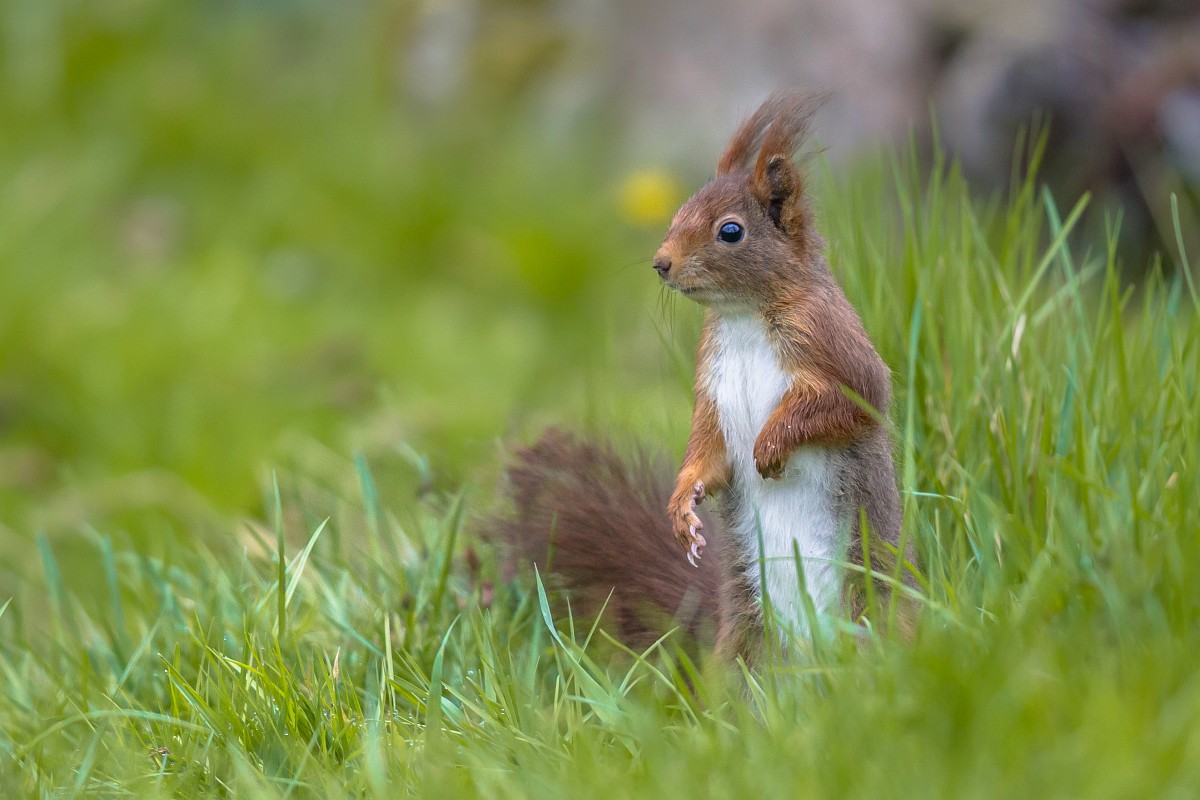 Sciurus vulgaris 201, Eekhoorn, Saxifraga-Rudmer Zwerver.jpgRed squirrel in lawn Red Squirrel (Sciurus vulgaris) standing upright in grass of backyard lawn and looking at camera