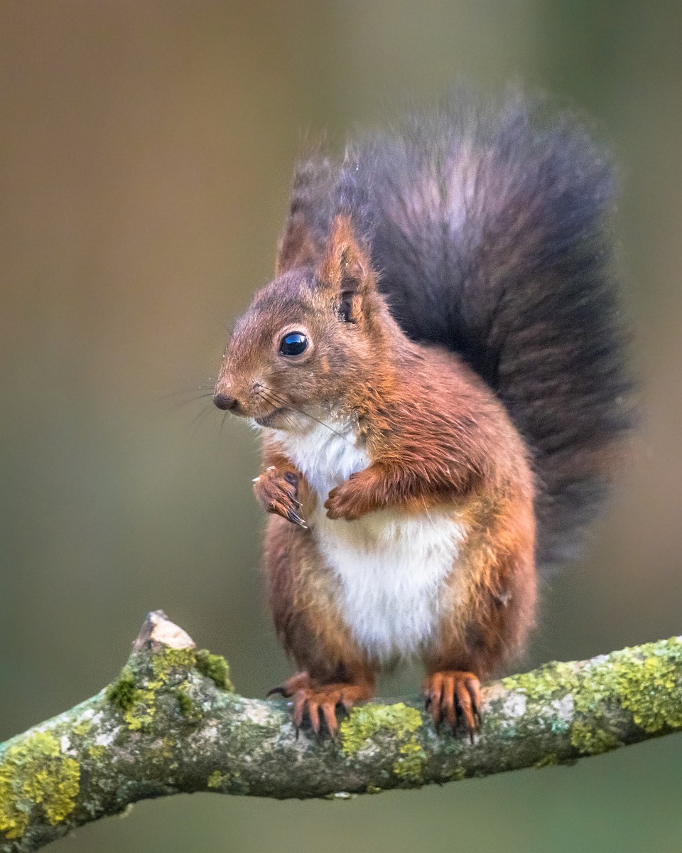 Sciurus vulgaris 202, Eekhoorn, Saxifraga-Rudmer Zwerver.jpgRed squirrel on branch Red squirrel (Sciurus vulgaris) sitting on hind legs on branch while animal is looking at camera