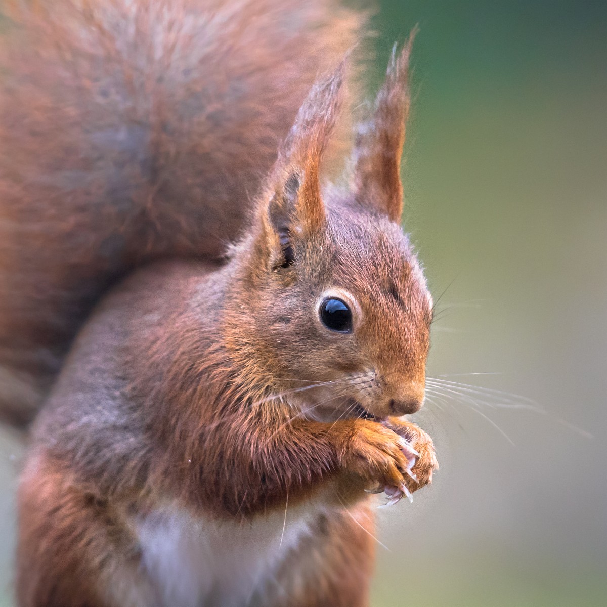 Sciurus vulgaris 203, Eekhoorn, Saxifraga-Rudmer Zwerver.jpgRed squirrel portrait Red squirrel (Sciurus vulgaris) close up portrait of animal eating nut against green background