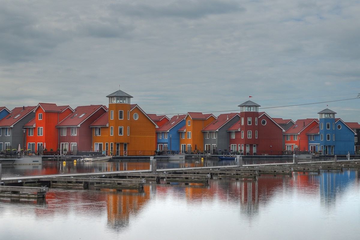 NL, Groningen, Groningen, Reitdiep 5, Saxifraga-Rudmer Zwerver.jpg colorful houses colorful houses on waterfront