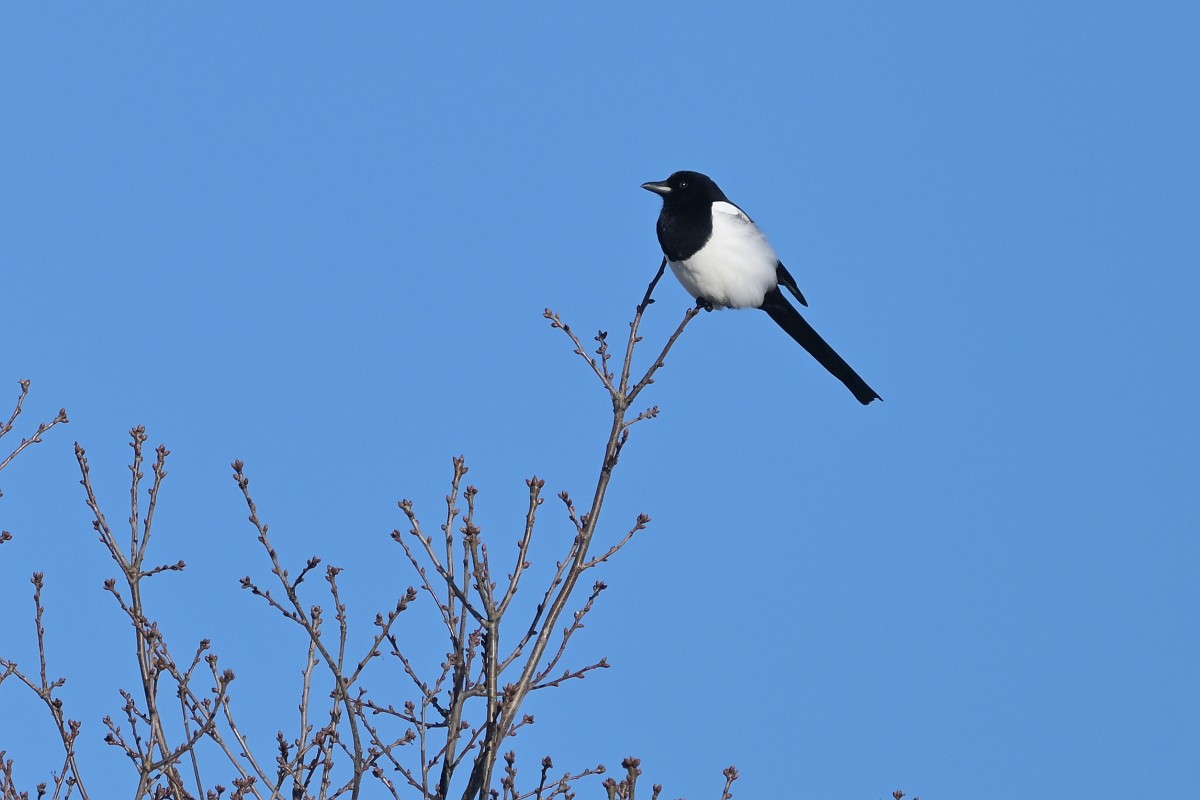 Pica pica 84, Ekster, Saxifraga-Rudmer Zwerver.jpg Eurasian magpie in light of setting sun Eurasian magpie or common magpie (Pica pica) on branch lit by setting sun with blue sky in background