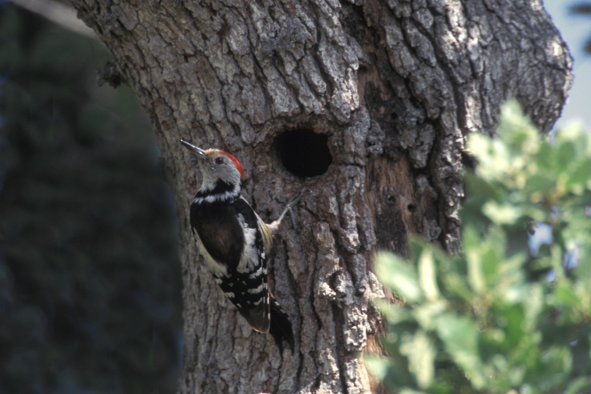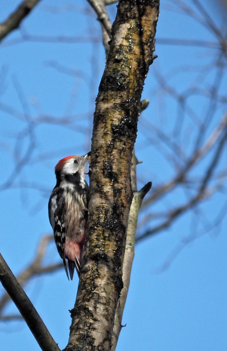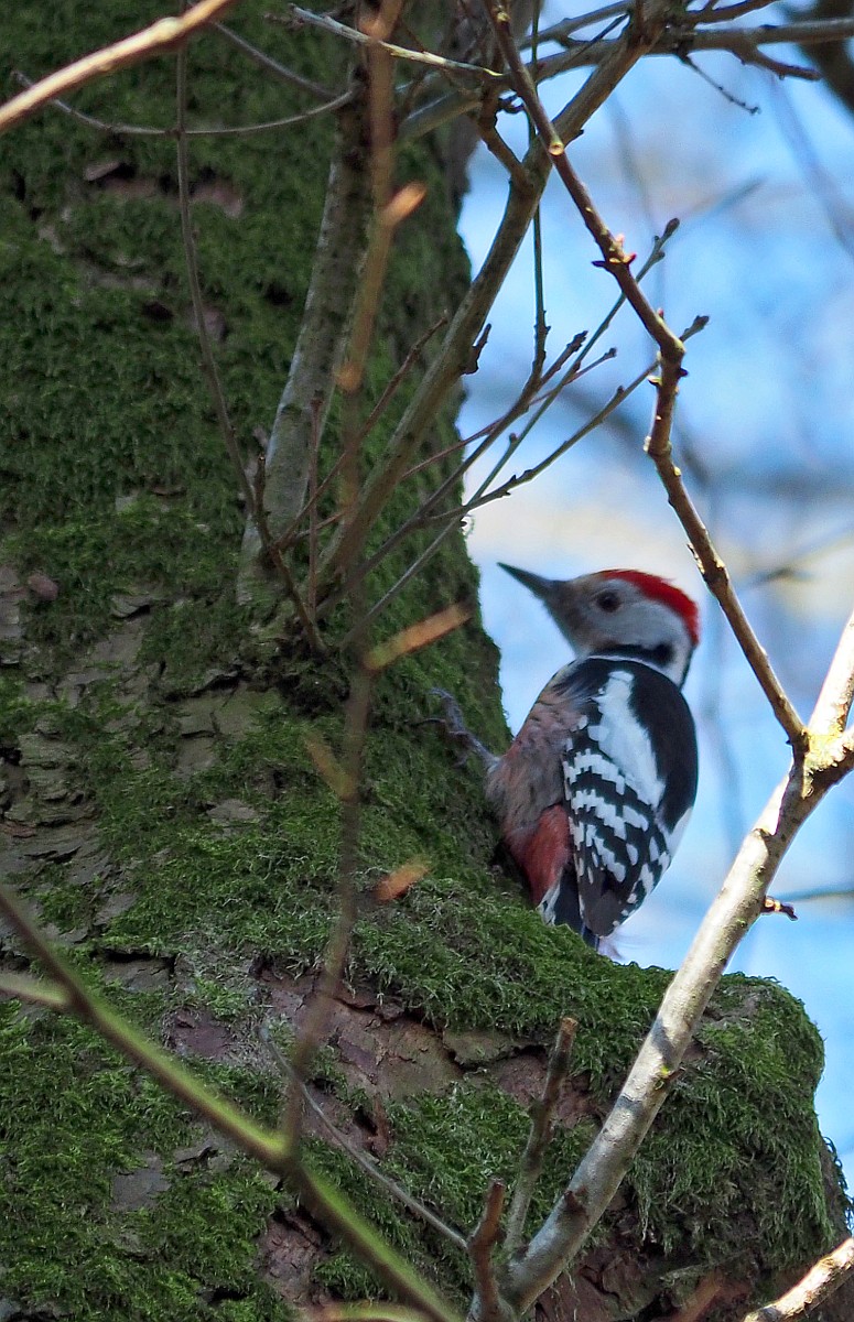 Dendrocoptes medius 66, Middelste bonte specht, Saxifraga-Rudmer Zwerver .jpg Middle spotted woodpecker Middle spotted woodpecker (Dendrocopos medius). Looking for food in a tree. Wildlife in nature. Netherlands. |