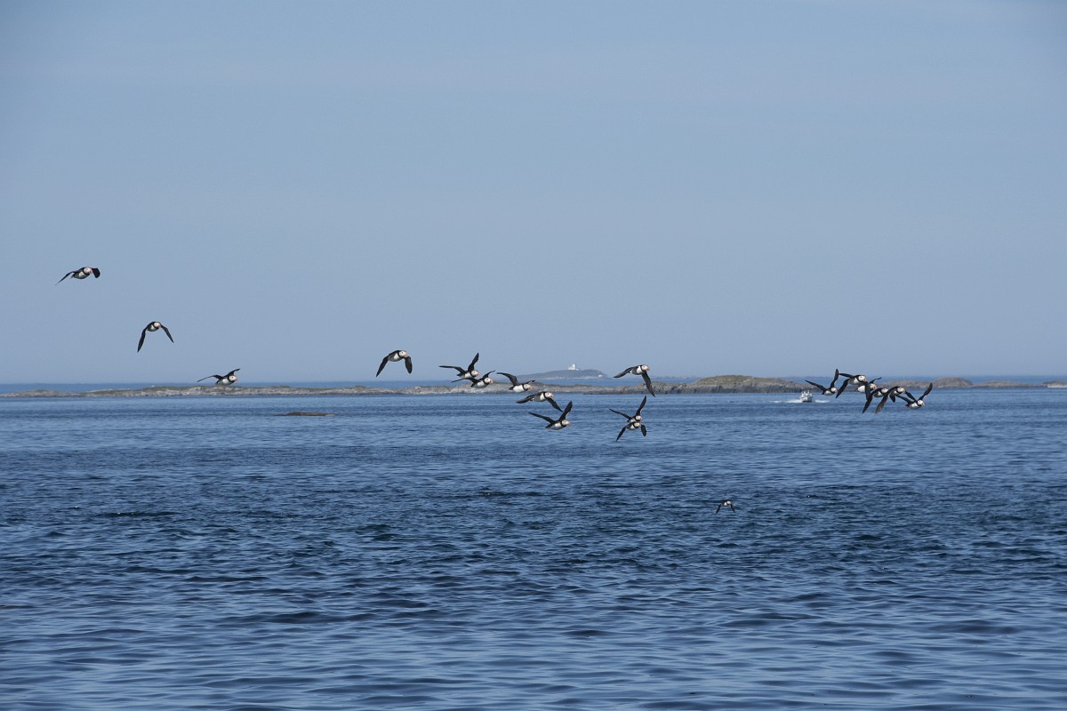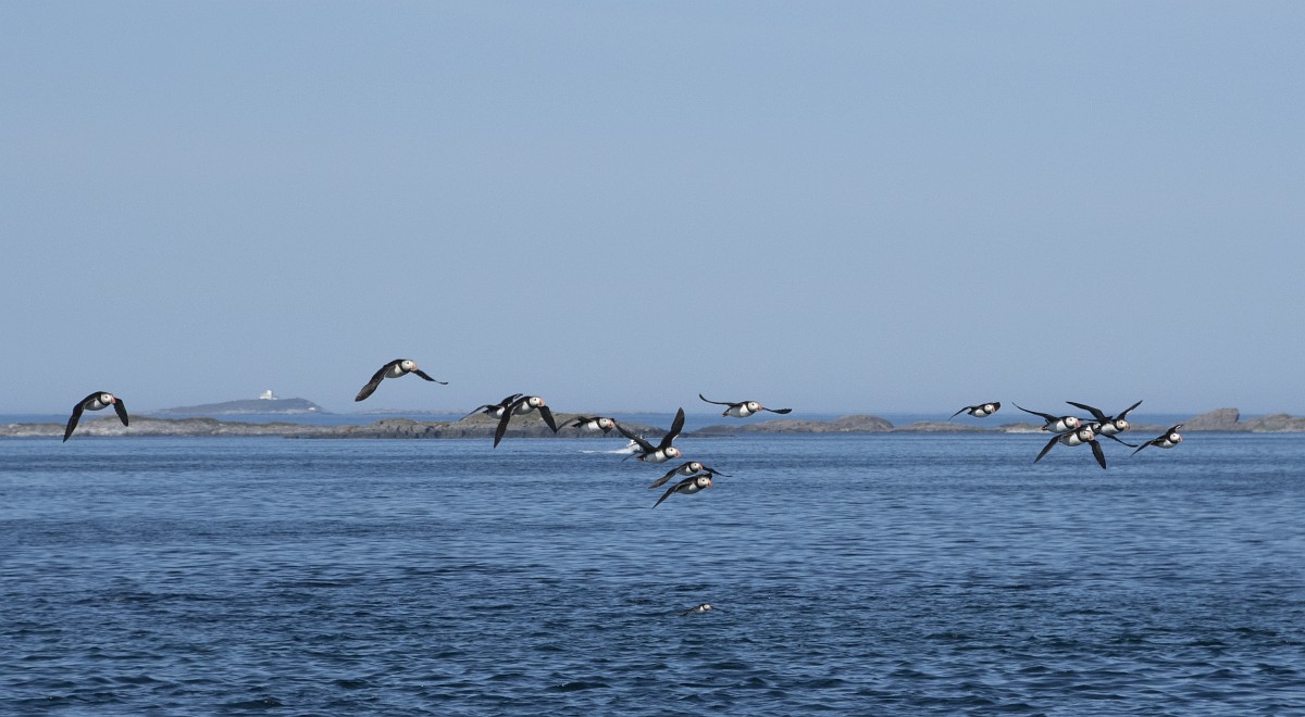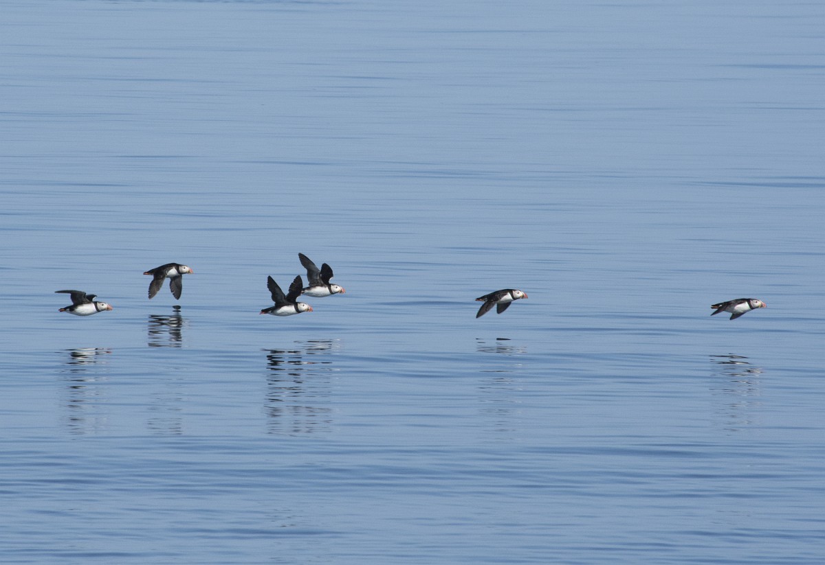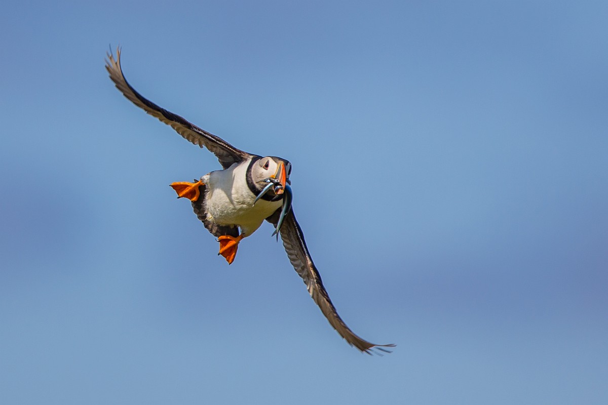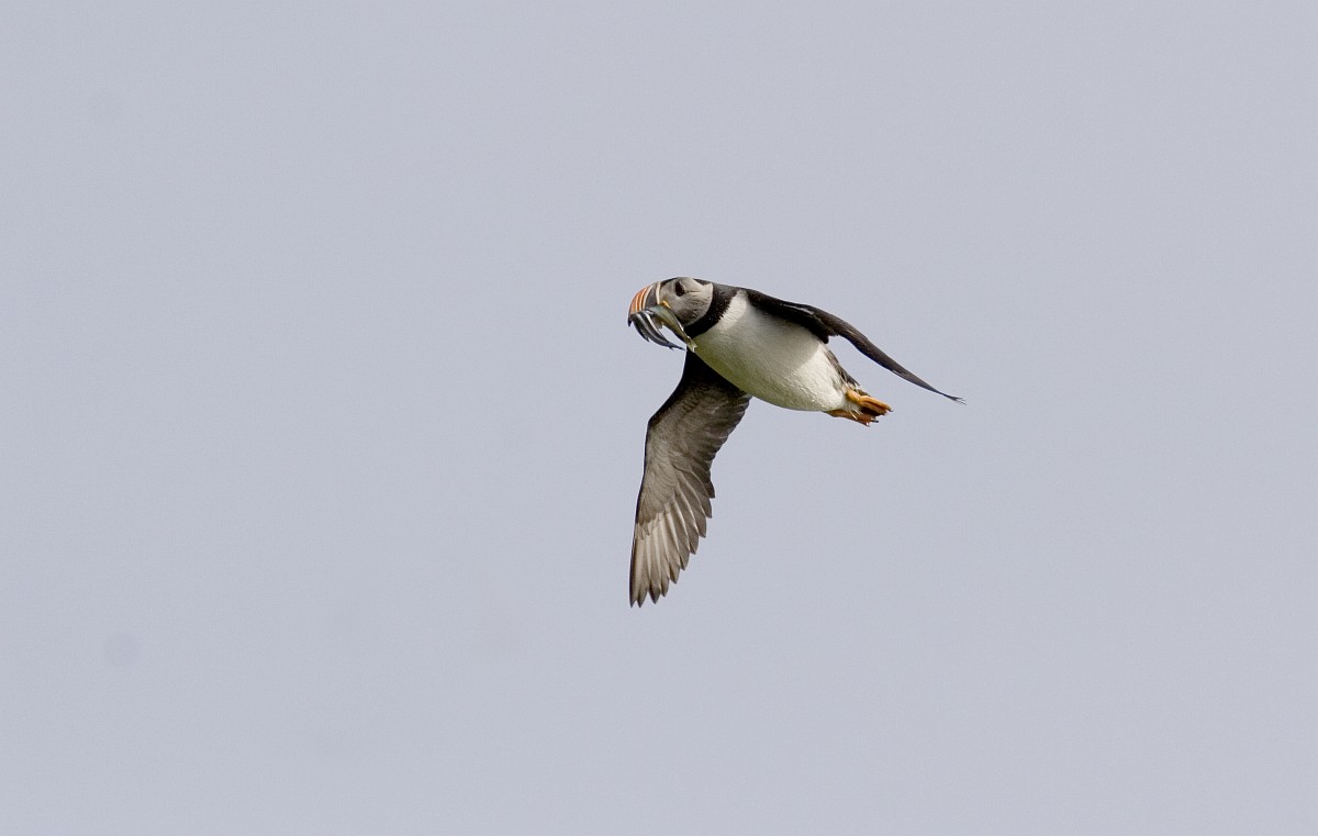 Fratercula arctica 65, Papagaaduiker, Saxifraga-Rudmer Zwerver.jpgFlying Puffin Puffin (Fratercula arctica) flying back to nesting colony with fish in beak to feed young on Isle of May, Scotland