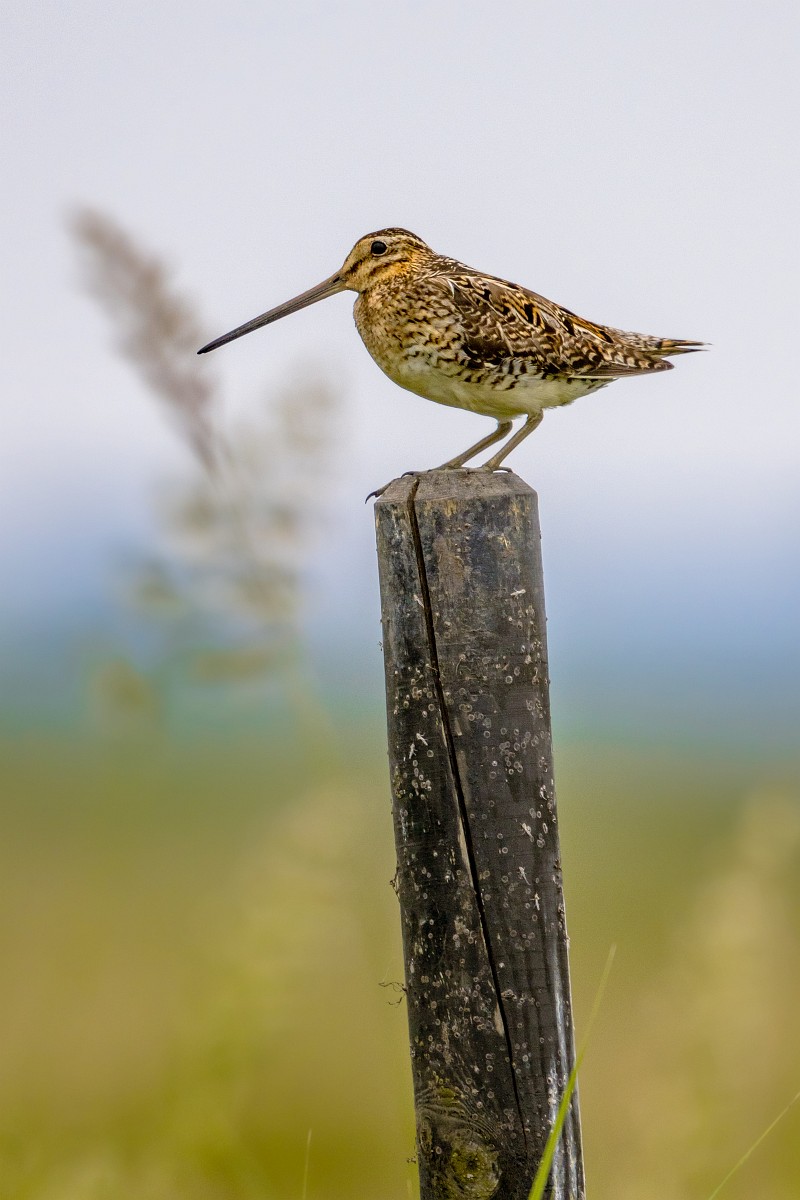 Gallinago gallinago 118, Watersnip, Saxifraga-Rudmer Zwerver.jpg Common snipe sitting on pole in wetland Common snipe (Gallinago gallinago) wader bird guarding for territory in wetland breeding habitat. Wildlife scene in nature. Netherlands.