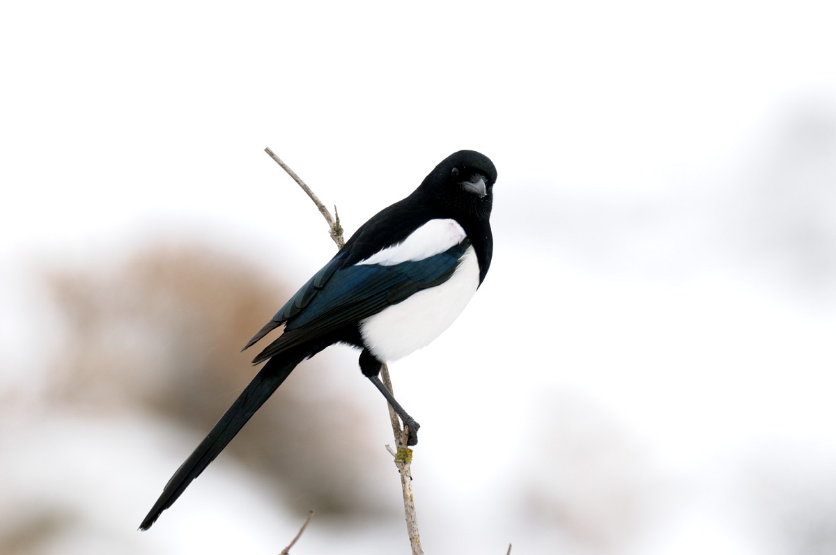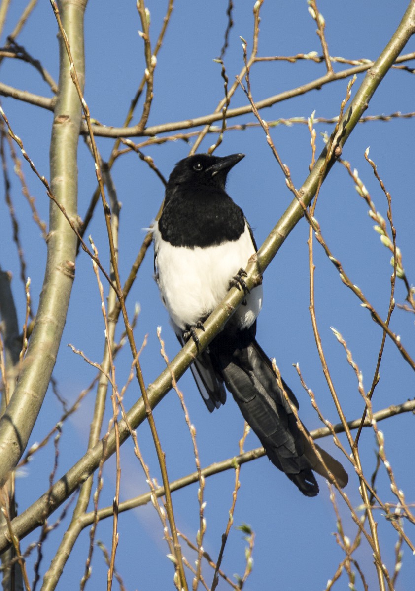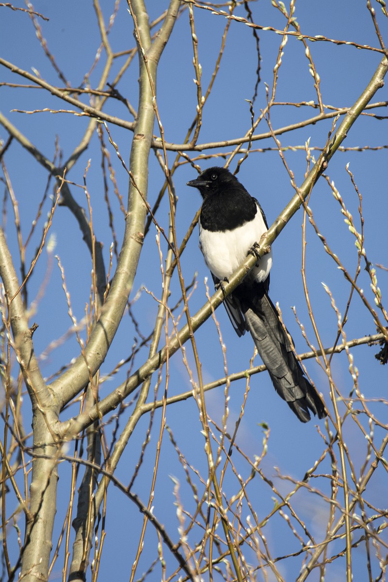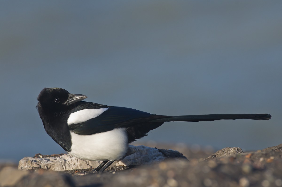 Pica pica 84, Ekster, Saxifraga-Rudmer Zwerver.jpg Eurasian magpie in light of setting sun Eurasian magpie or common magpie (Pica pica) on branch lit by setting sun with blue sky in background