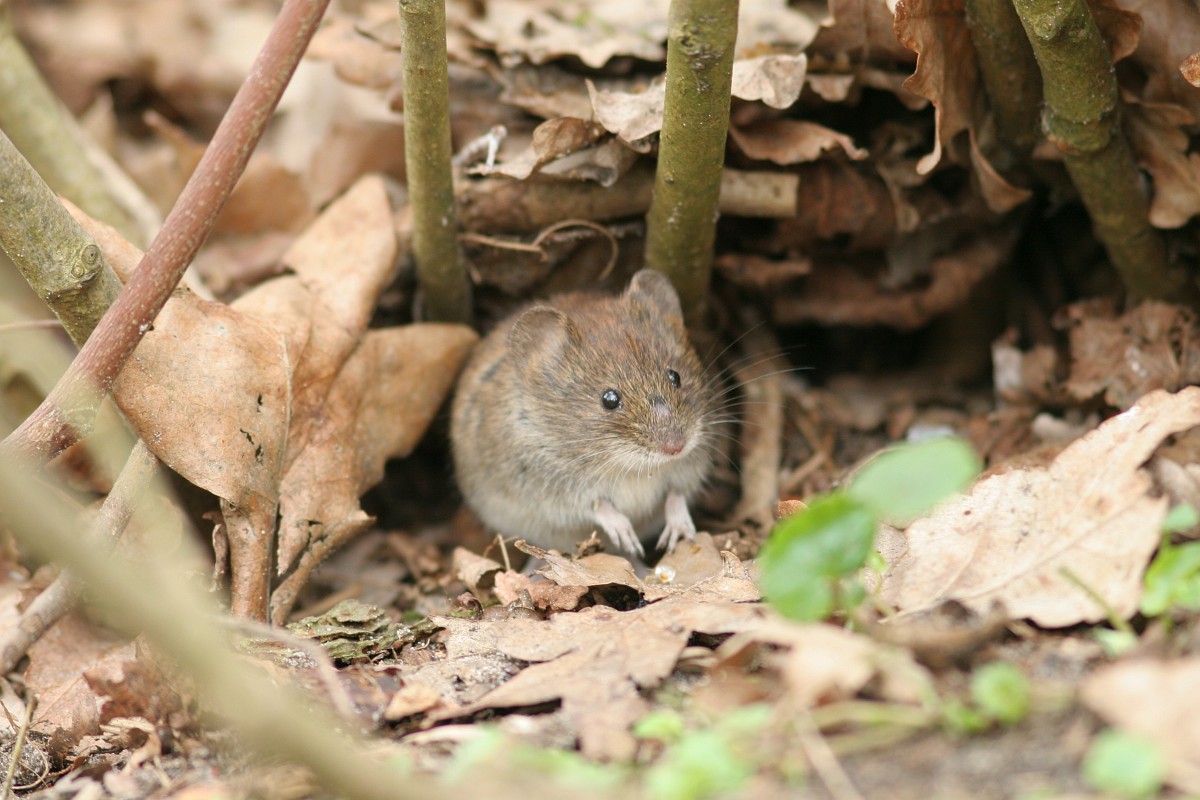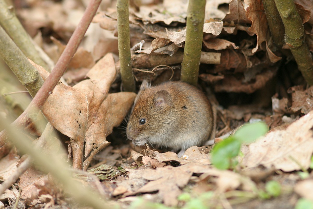 Clethrionomys glareolus 16, Rosse woelmuis, Saxifraga-Rudmer Zwerver.jpgBank vole hiding between the leaves Bank vole (Clethrionomys glareolus) hiding between the leaves