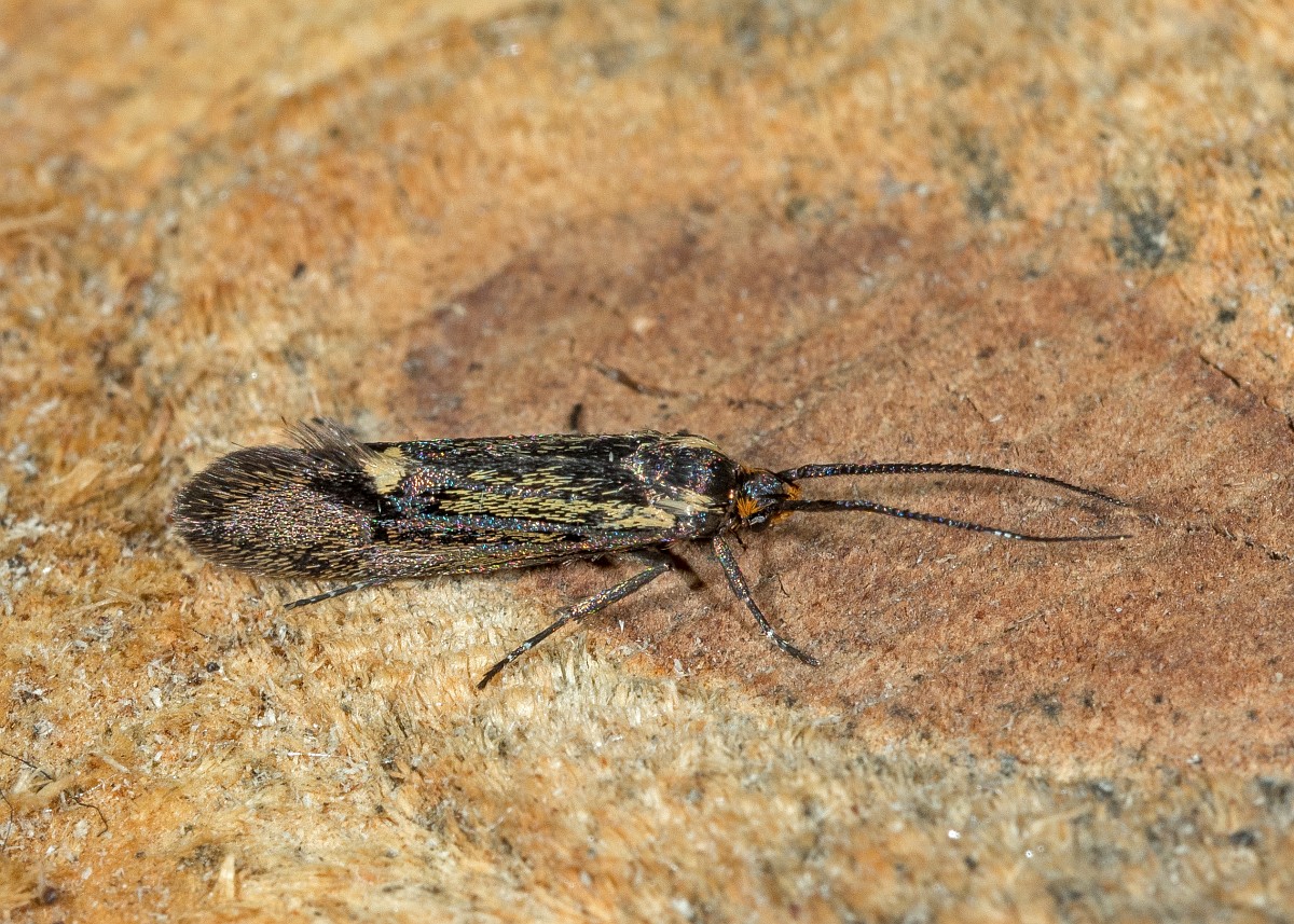 Esperia sulphurella 01, esperiamot, AHB  Esperia sulphurella, esperiamot Aangetroffen op 7 januari 2018 in een doos waar een stuk schors enige weken daarvoor was opgeborgen. Kennelijk door de warmte binnenshuis uit de cocon gekropen.De coconresten niet gevonden  Validatie waarneming.nl Zie: https://waarneming.nl/waarneming/view/147457430