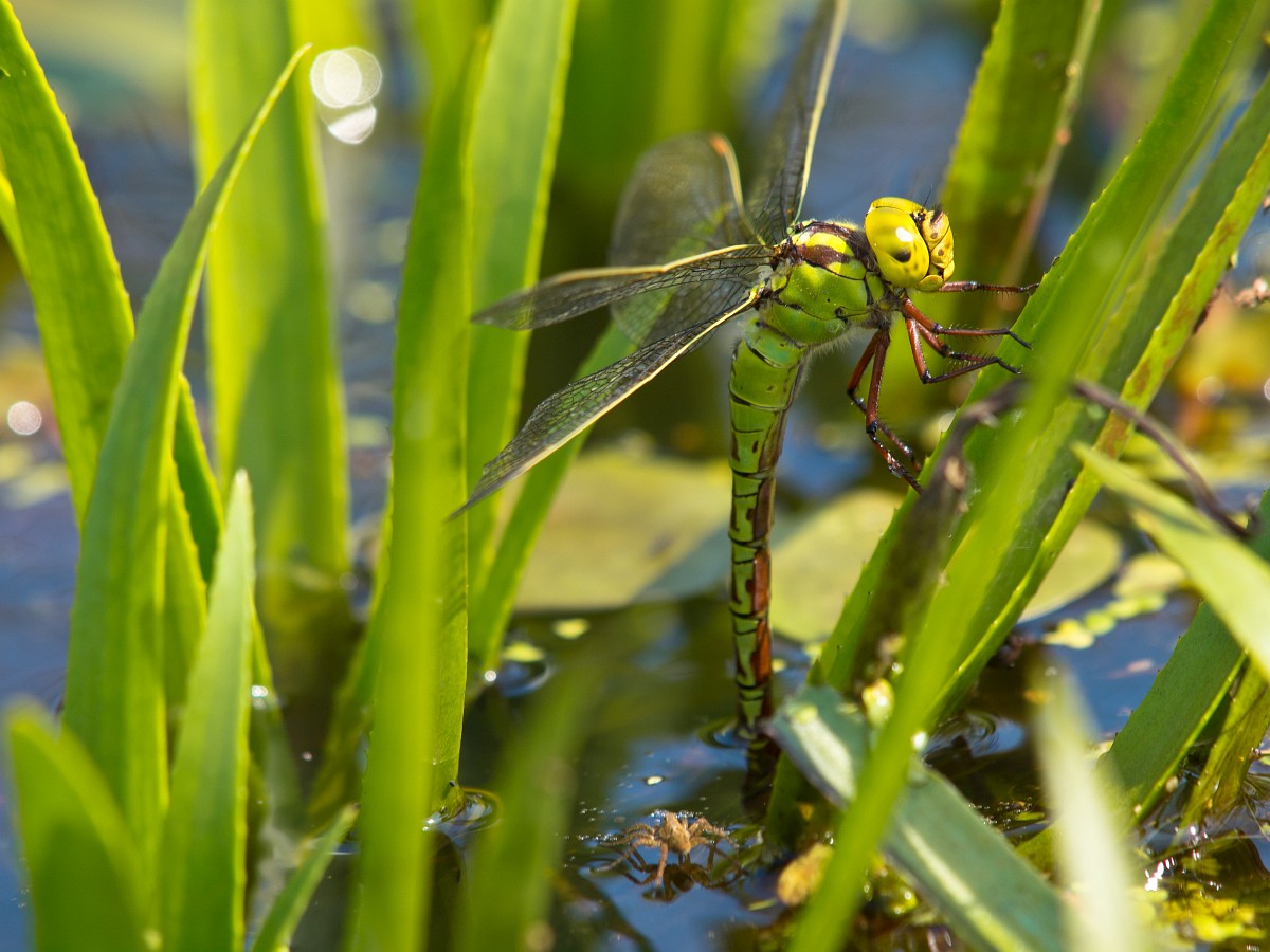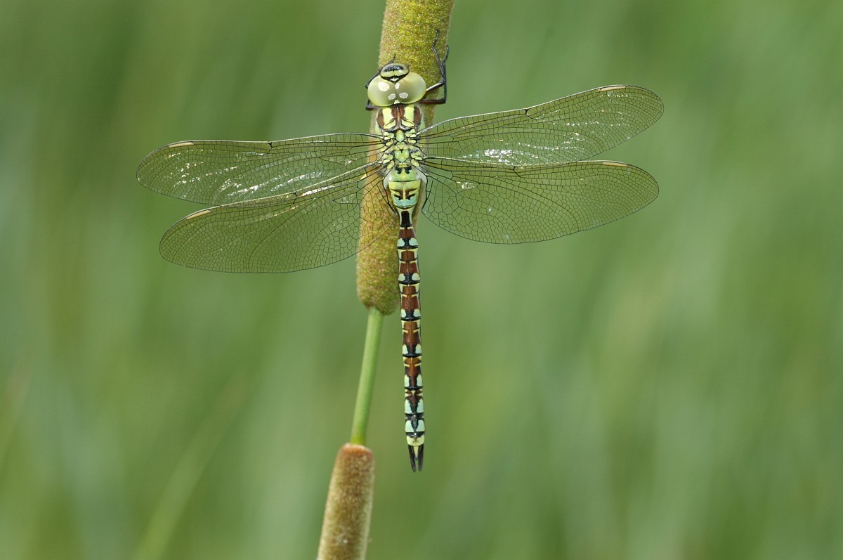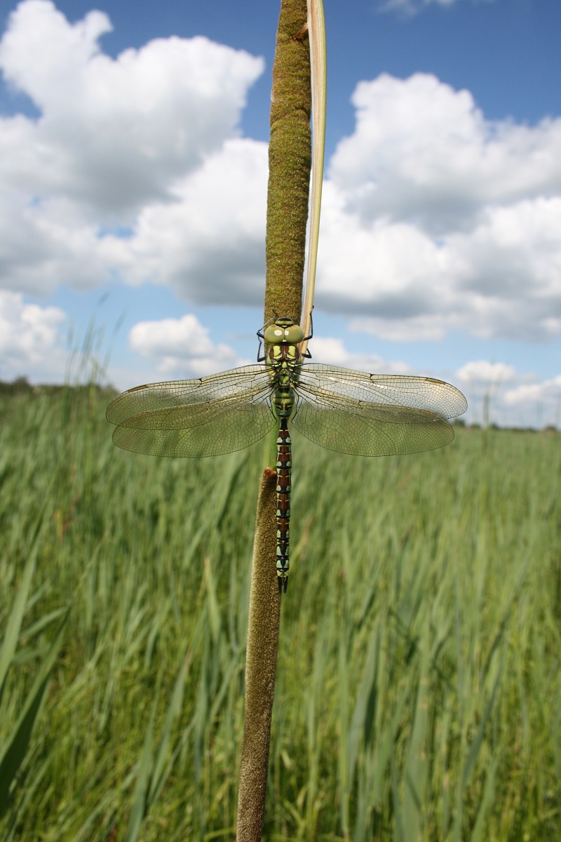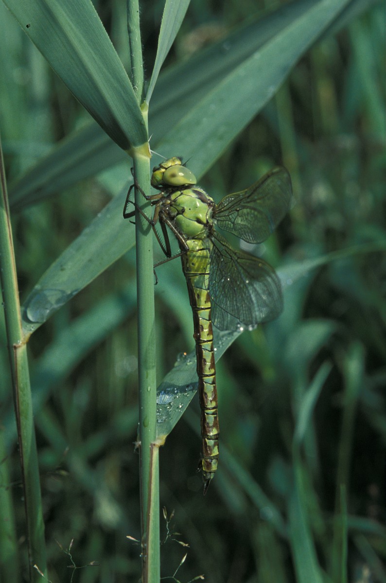 Aeshna viridis 11, Groene glazenmaker, Saxifraga-Rudmer Zwerver.jpgDragonfly Resting on a Leaf Green Hawker Dragonfly (Aeshna viridis) Warming its Wings in the Early Morning Sun