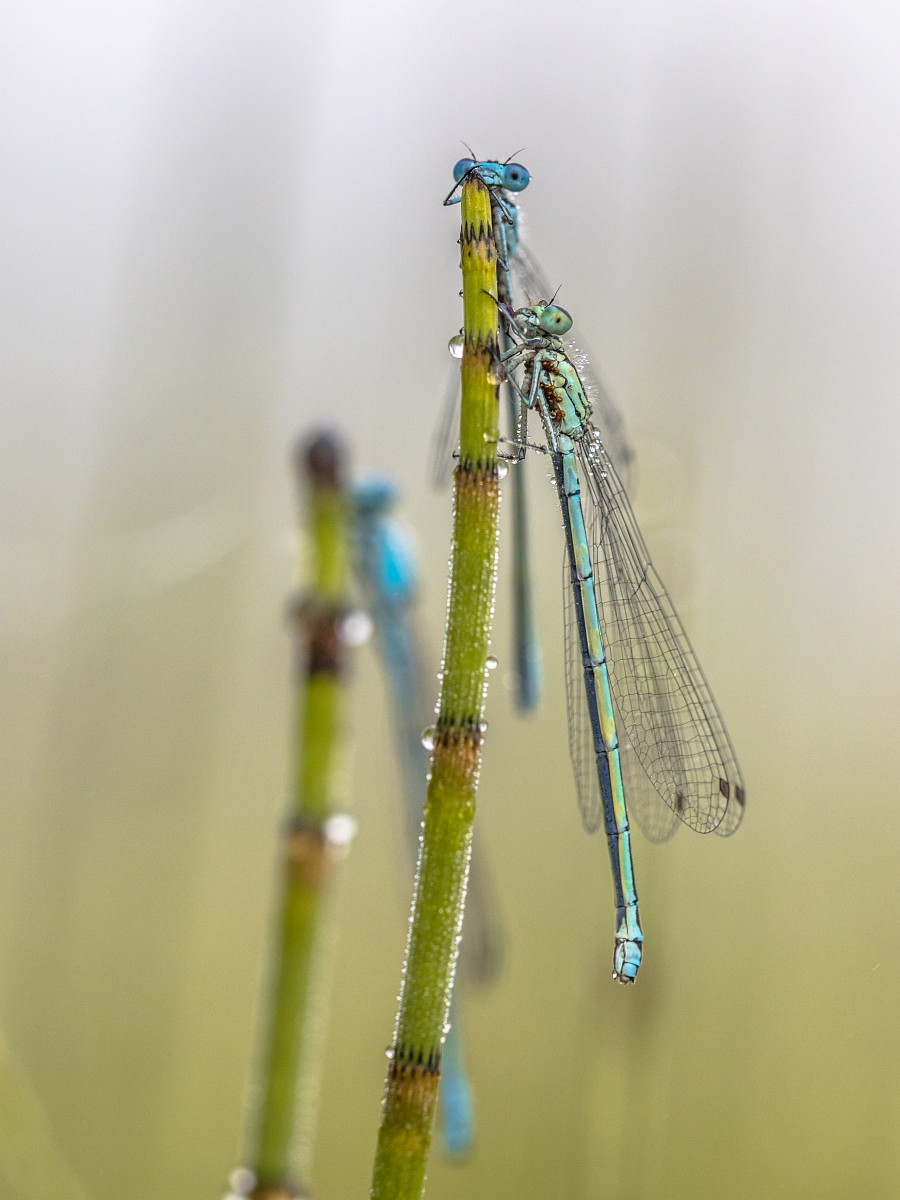 Coenagrion puella 89, Azuurwaterjuffer, Saxifraga-Rudmer Zwerver.jpg Three damselfly sleeping Three damselfly sleeping in early morning with dew on their wings