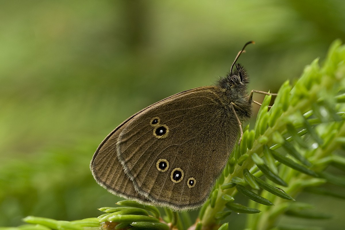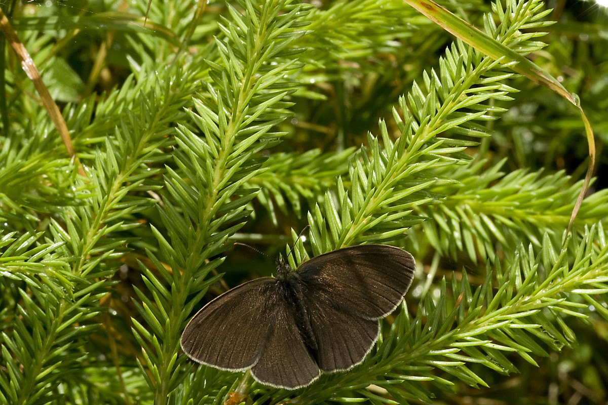 Aphantopus hyperantus 63, Koevinkje, Saxifraga-Rudmer Zwerver.jpg koevinkje Ringlet (Aphantopus hyperantus) butterfly on bright green background. In Europe it is common in most countries but absent from northern Scandinavia, peninsular Italy, Portugal, Southern and central Spain