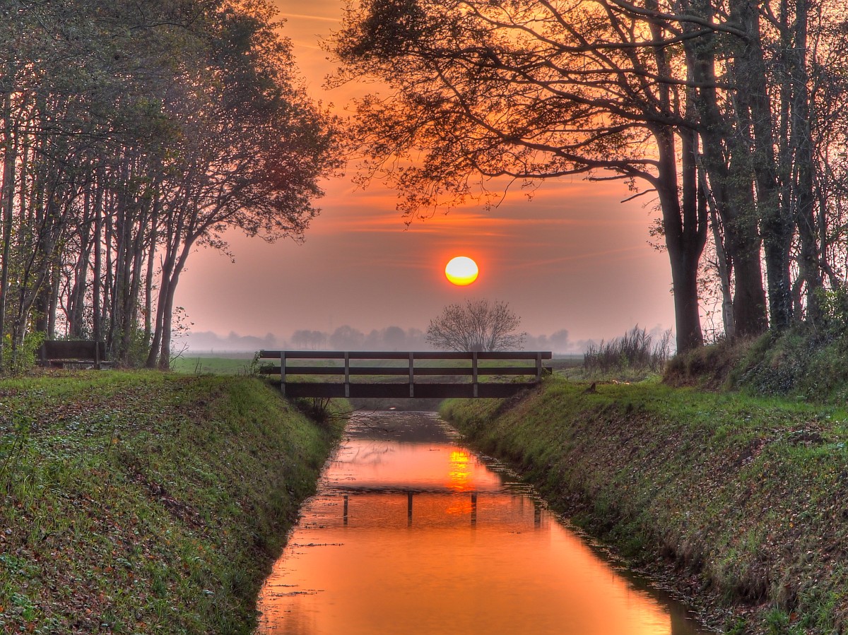 NL, Groningen, Stadskanaal, Onstwedde 7, Saxifraga-Rudmer Zwerver.jpg Yellow sunset Yellow sunset over bridge and canal in a park |