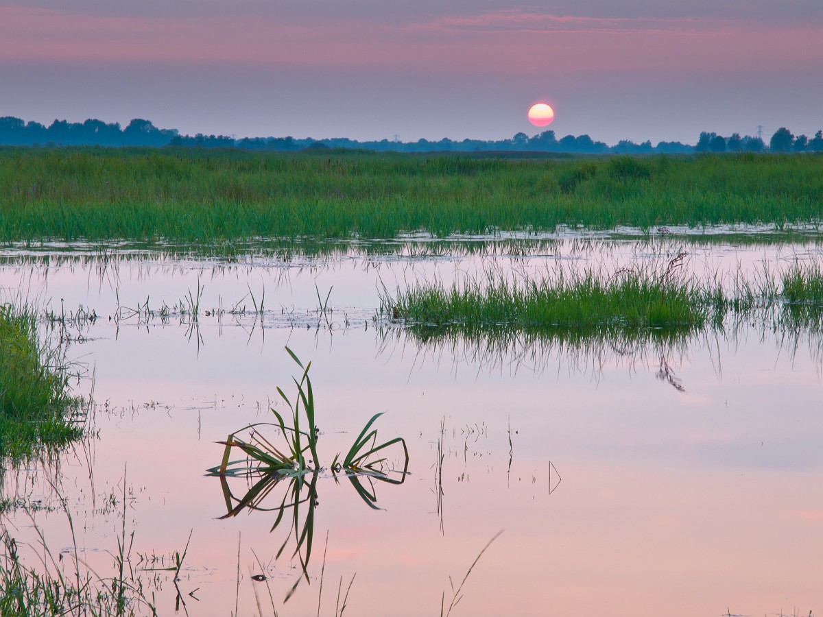 NL, Drenthe, Noordenveld, Onlanden 3, Saxifraga-Rudmer Zwerver.jpg Sunset over wetland Sunset over newly created dutch wetland
