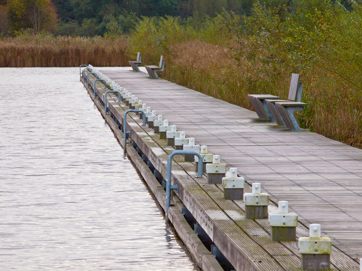 NL, Groningen, Oldamt, Blauwe stad 1, Saxifraga-Rudmer Zwerver.jpgA modern wooden jetty with bench A modern wooden jetty with bench
