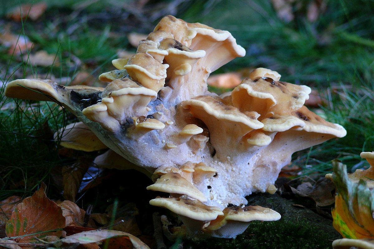 Old fungus Giant polypore (Meripilus giganteus)  Old fungus Giant polypore (Meripilus giganteus) : giant polypore, polypore, Meripilus giganteus, fungus, fungi, cap, caps, many, fall, autumn, autumnal, nature, natural, outside, outdoors, nobody, no people, yellow, brown, old, black-staining polypore Meripilus giganteus 14, Reuzenzwam, Saxifraga-Luuk Vermeer Meripilus giganteus 15, Reuzenzwam, Saxifraga-Luuk Vermeer Meripilus giganteus 16, Reuzenzwam, Saxifraga-Luuk Vermeer