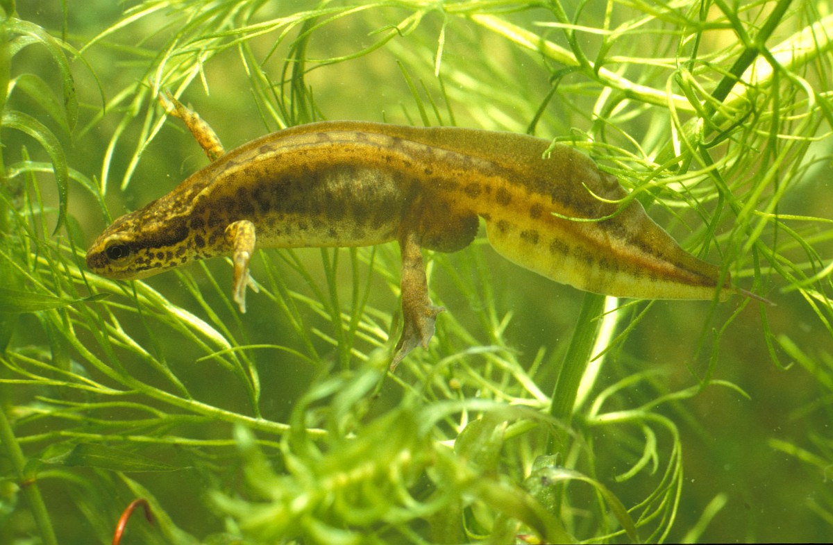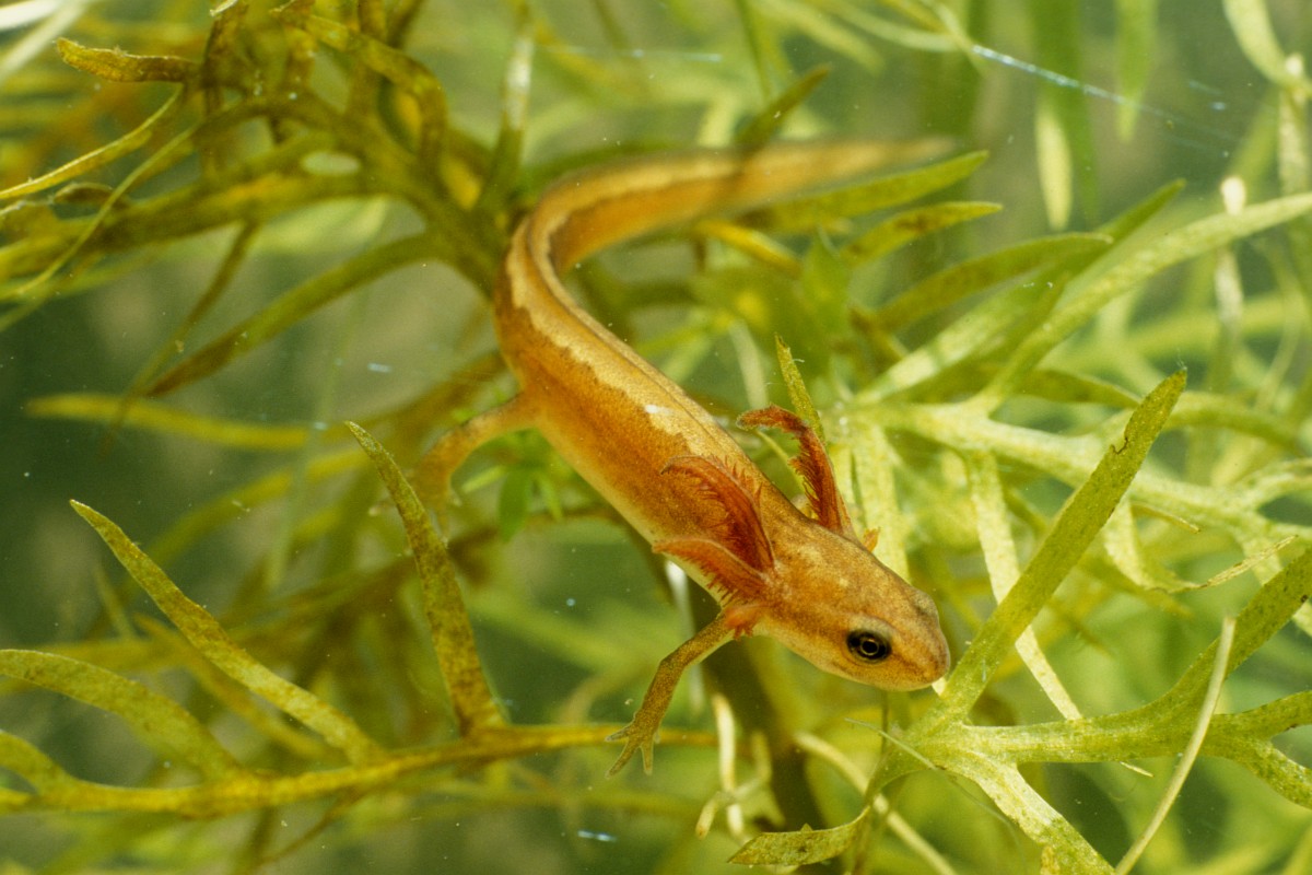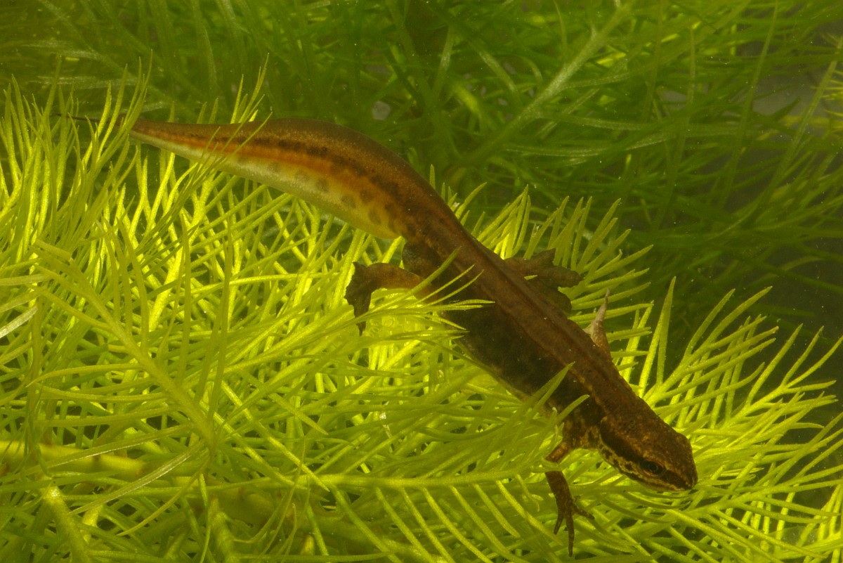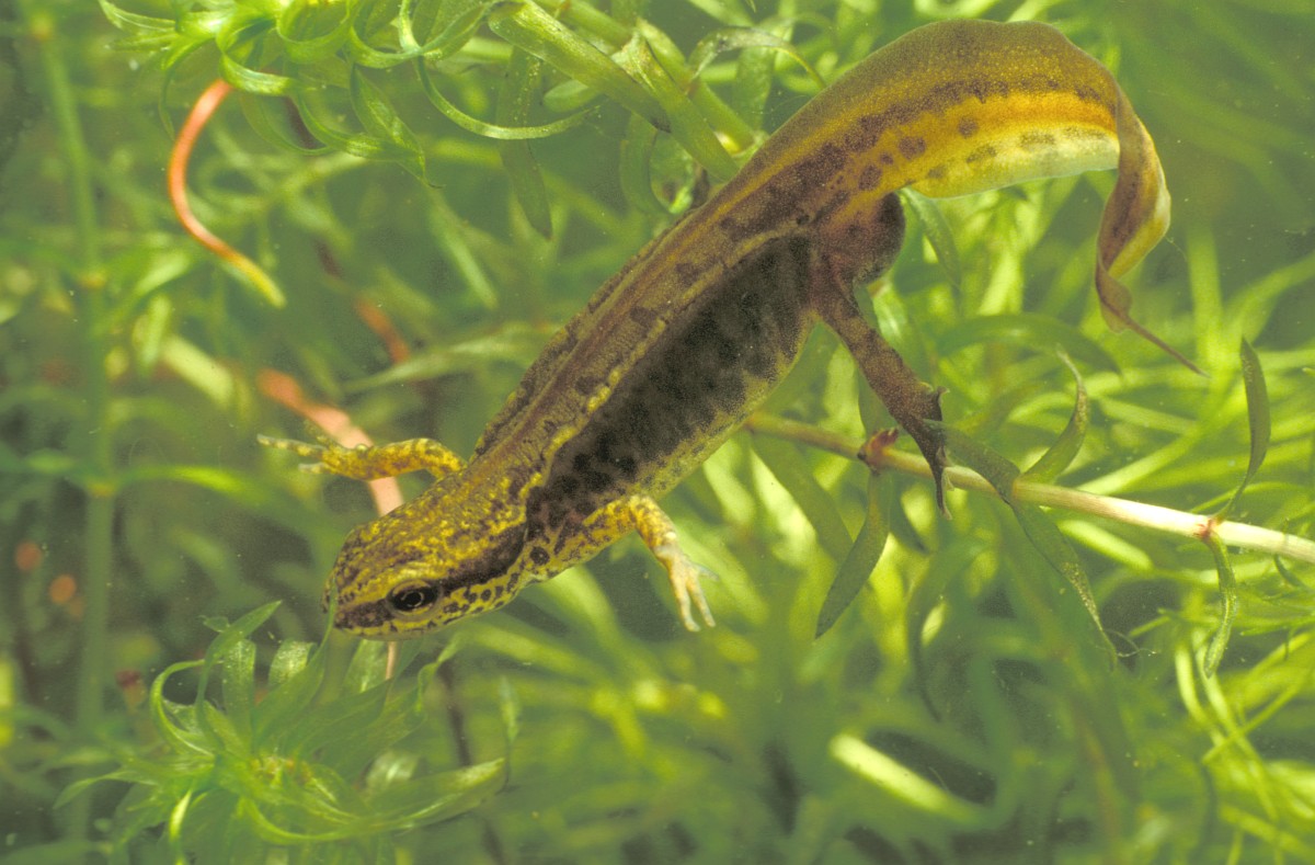 Lissotriton helveticus 13, Vinpootsalamander, Saxifraga-Rudmer Zwerver.jpgMale Palmate newt swimming in natural aquatic habitat Palmate newt (Lissotriton helveticus) colorful aquatic amphibian male swimming in freshwater habitat of pond. Underwater wildlife scene of animal in nature of Europe. Netherlands.