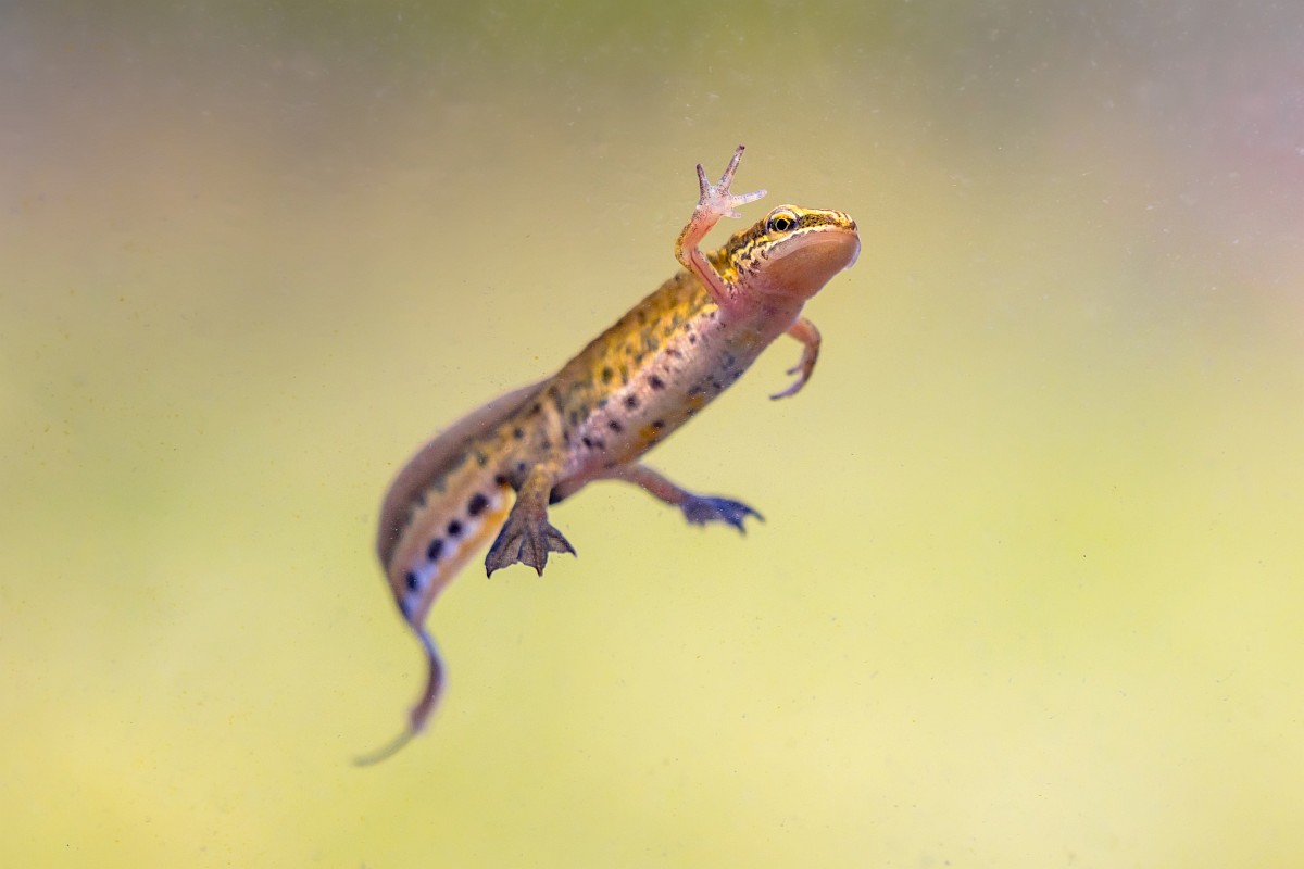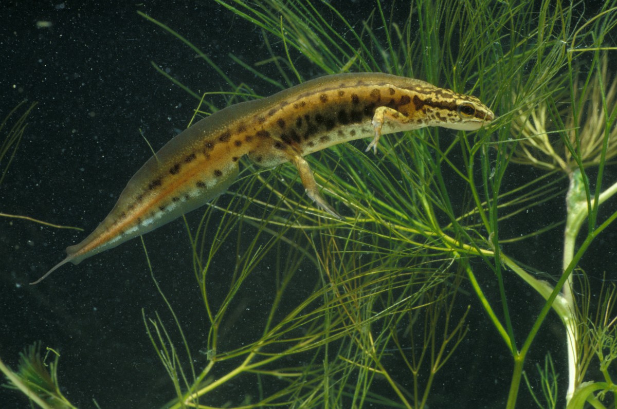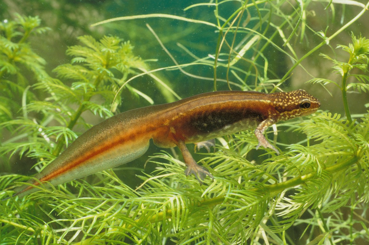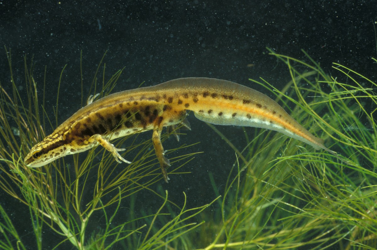 Lissotriton helveticus 13, Vinpootsalamander, Saxifraga-Rudmer Zwerver.jpgMale Palmate newt swimming in natural aquatic habitat Palmate newt (Lissotriton helveticus) colorful aquatic amphibian male swimming in freshwater habitat of pond. Underwater wildlife scene of animal in nature of Europe. Netherlands.