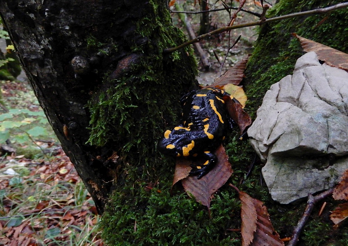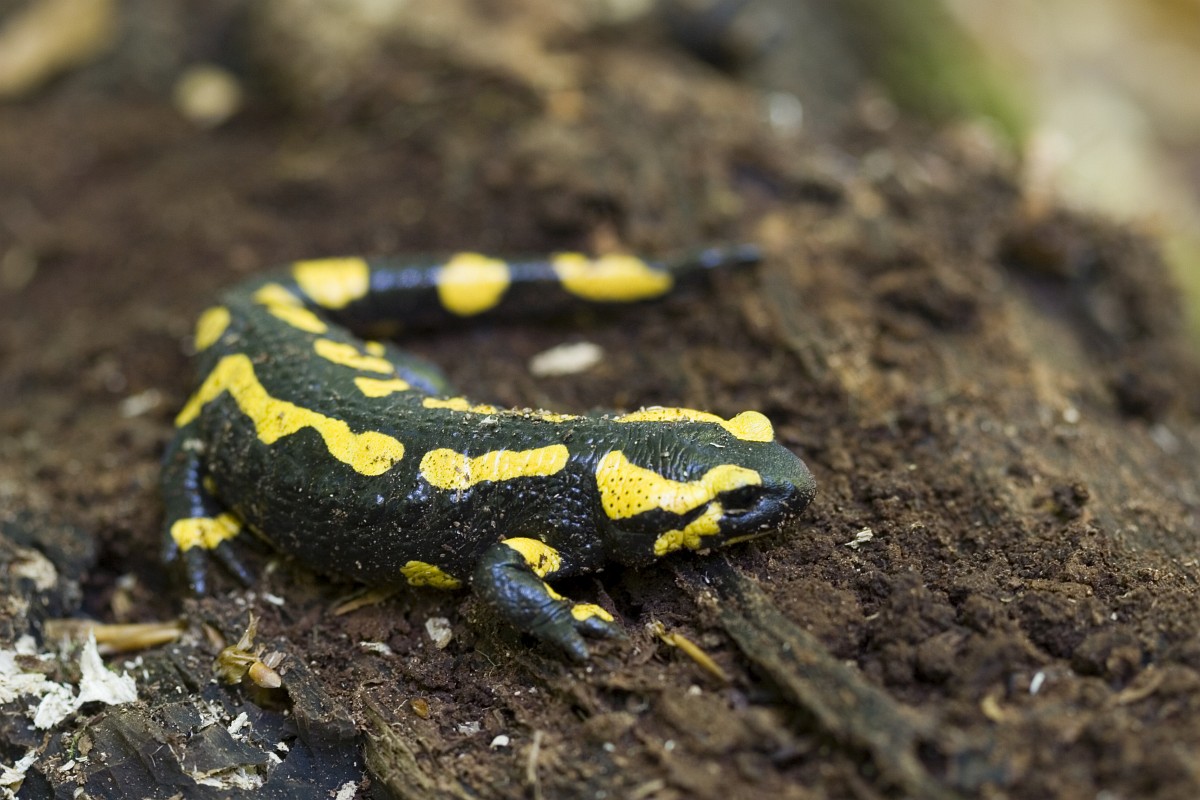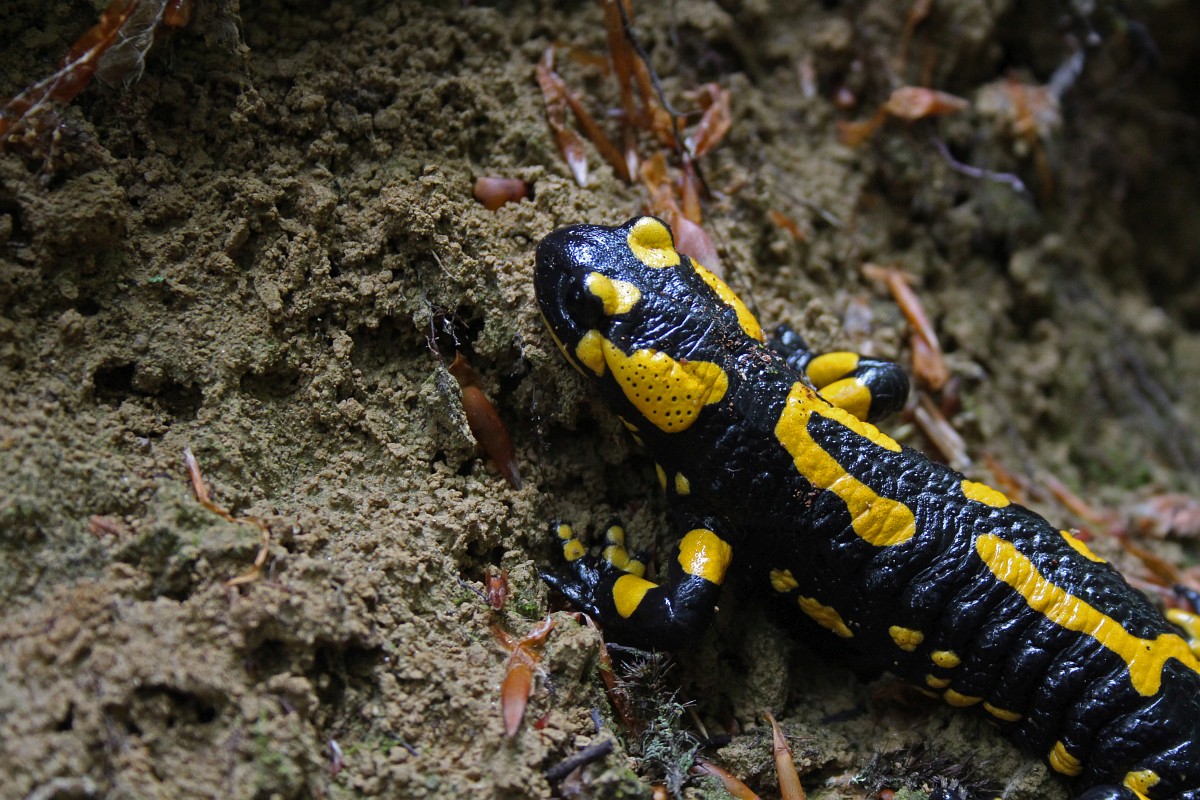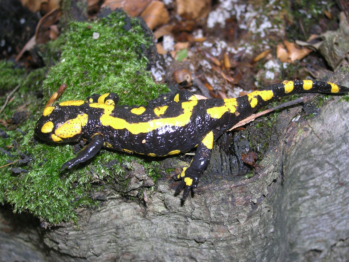Salamandra salamandra 46, Vuursalamander, Saxifraga-Rudmer Zwerver.jpgPoisonous Fire salamander in its natural habitat Toxic Fire salamanders (Salamandre salamandre) live in central European old deciduous forests and are more common in hilly areas with lots of dead trunks.