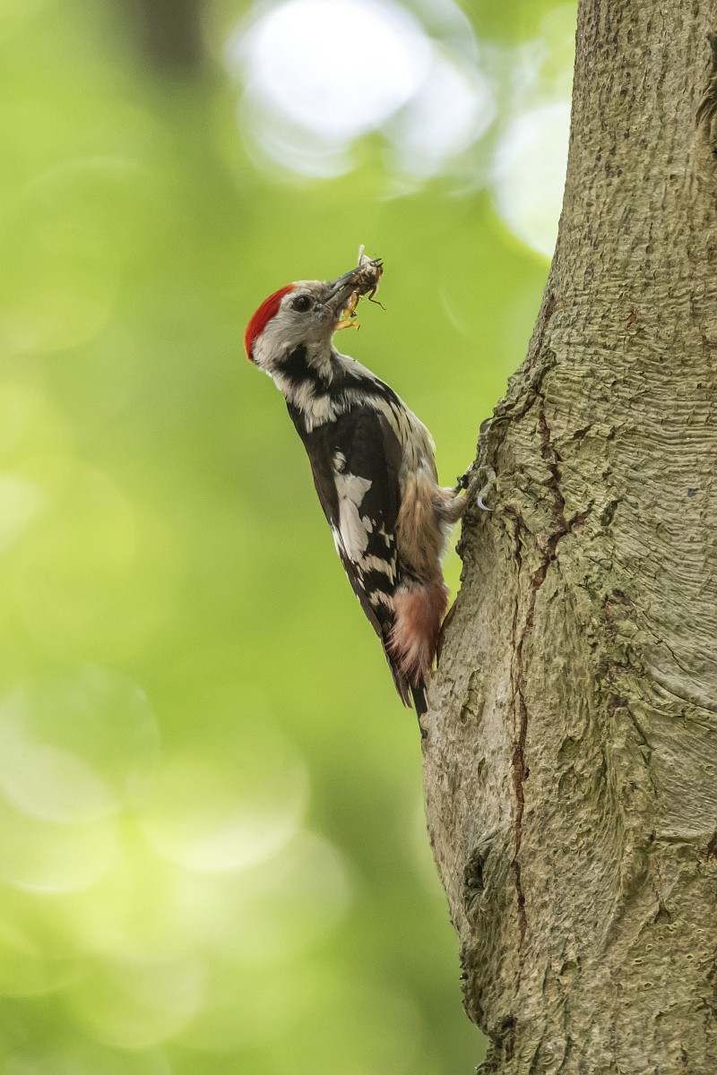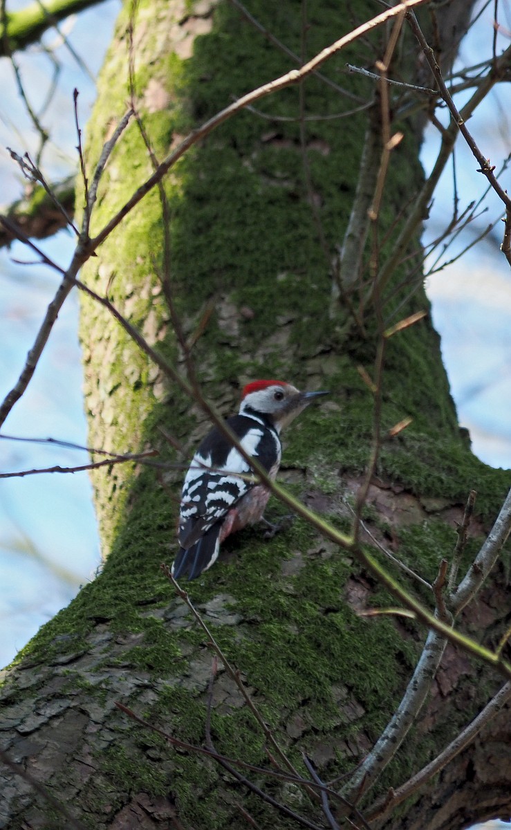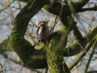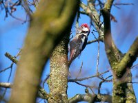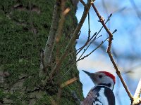 Dendrocoptes medius 66, Middelste bonte specht, Saxifraga-Rudmer Zwerver .jpg Middle spotted woodpecker Middle spotted woodpecker (Dendrocopos medius). Looking for food in a tree. Wildlife in nature. Netherlands. |