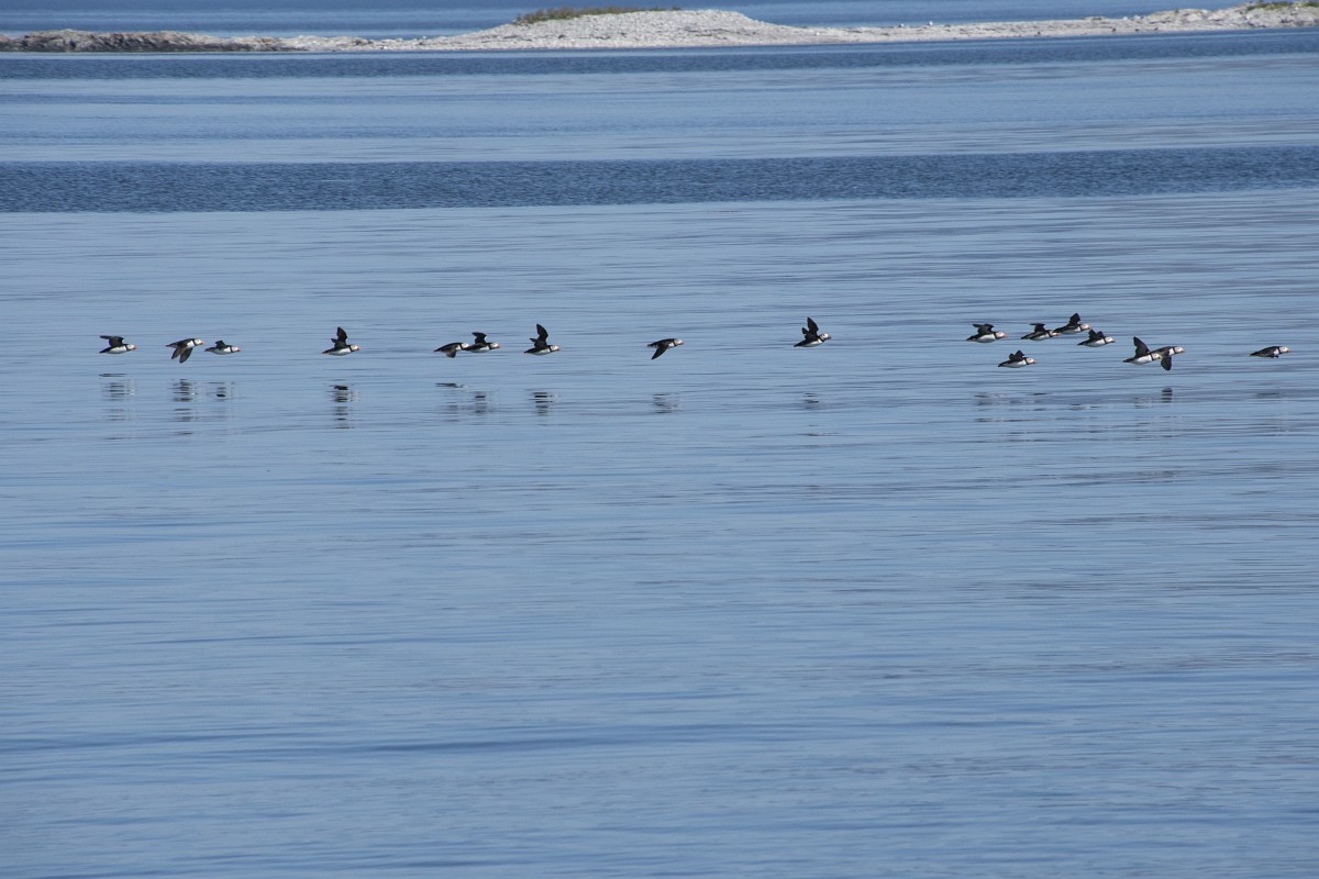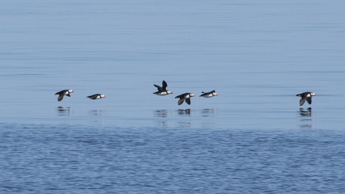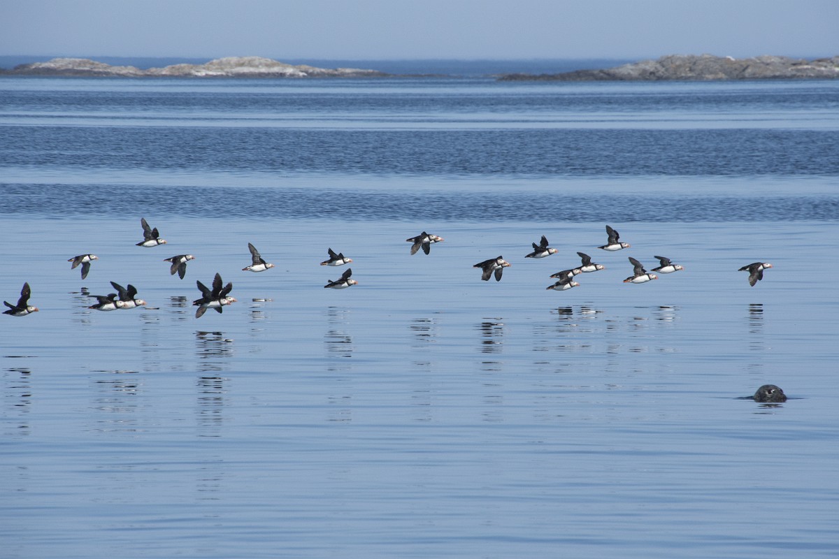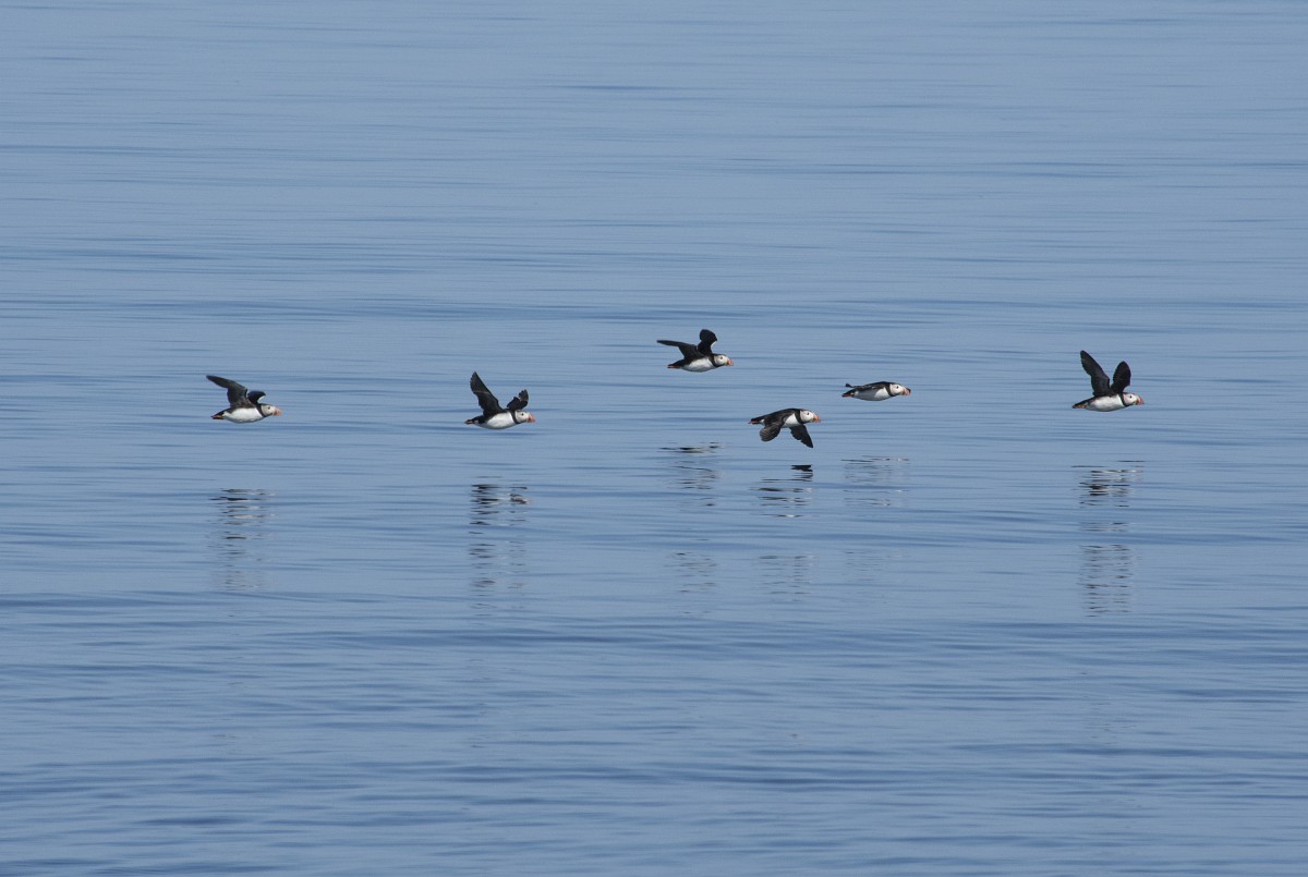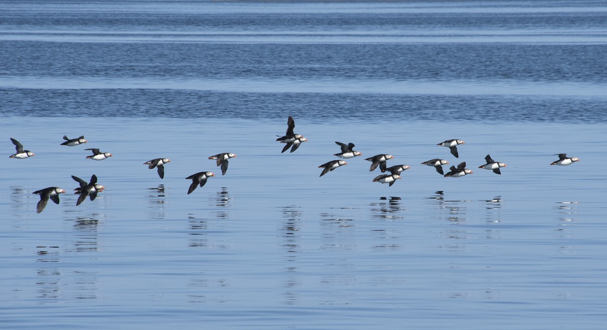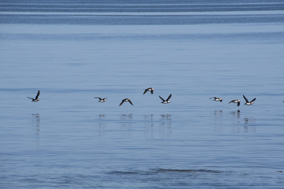 Fratercula arctica 65, Papagaaduiker, Saxifraga-Rudmer Zwerver.jpgFlying Puffin Puffin (Fratercula arctica) flying back to nesting colony with fish in beak to feed young on Isle of May, Scotland