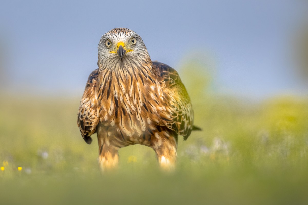 Milvus milvus 144, Rode wouw, Saxifraga-Rudmer Zwerver.jpg Red kite perched in green grass with flowers Red kite (Milvus milvus) perched in Spanish Pyrenees, Vilagrassa, Catalonia, Spain. April. It is resident in the milder parts of its range in western Europe and northwest Africa, birds from northeastern and central Europe winter further south and west.