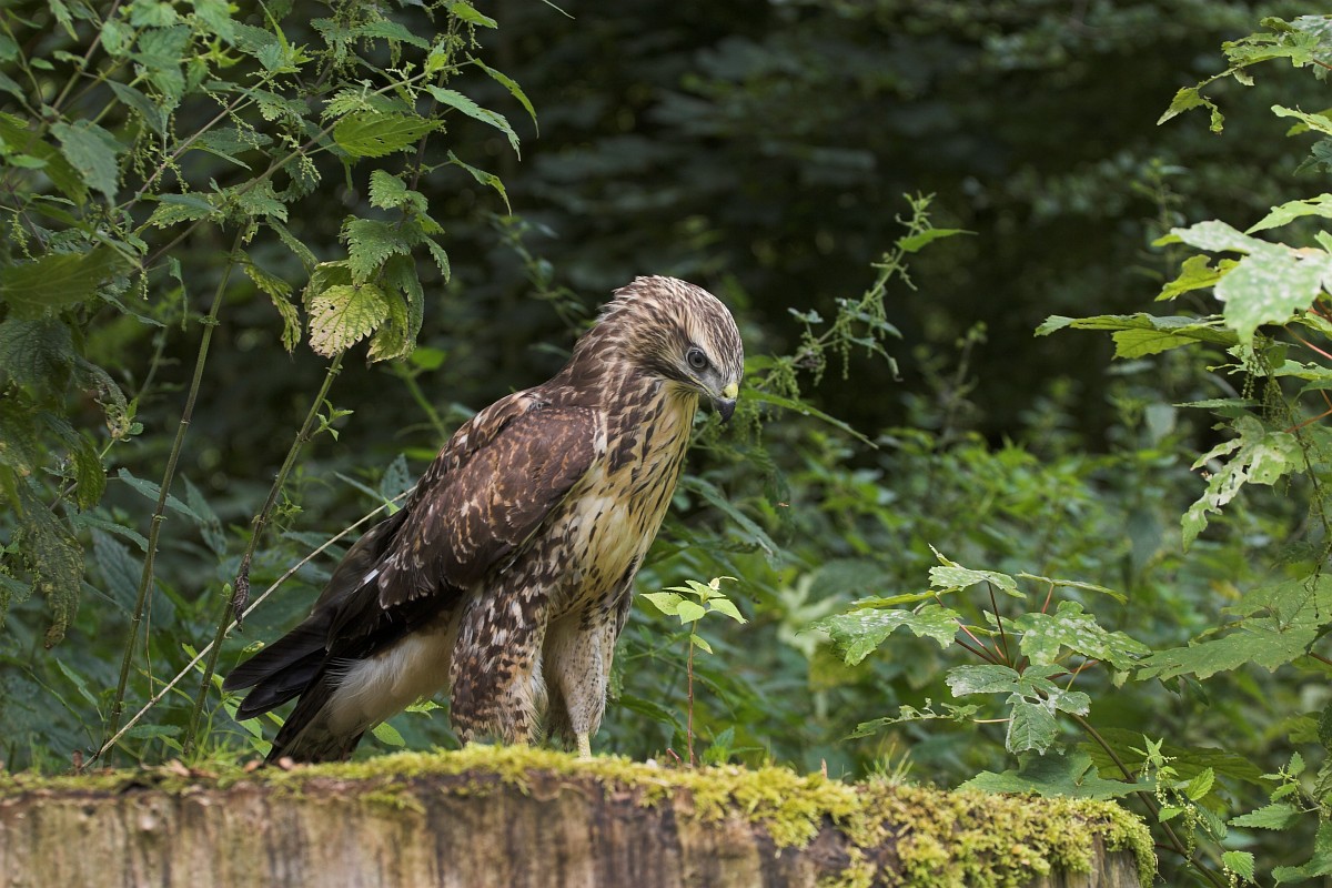 Buteo buteo 238, Buizerd, Saxifraga-Rudmer Zwerver.jpg Buzzard perched on log Common European Buzzard (Buteo buteo) raptor bird perched on lookout and looking for prey in Spanish Pyrenees, Vilagrassa, Catalonia, Spain. April.