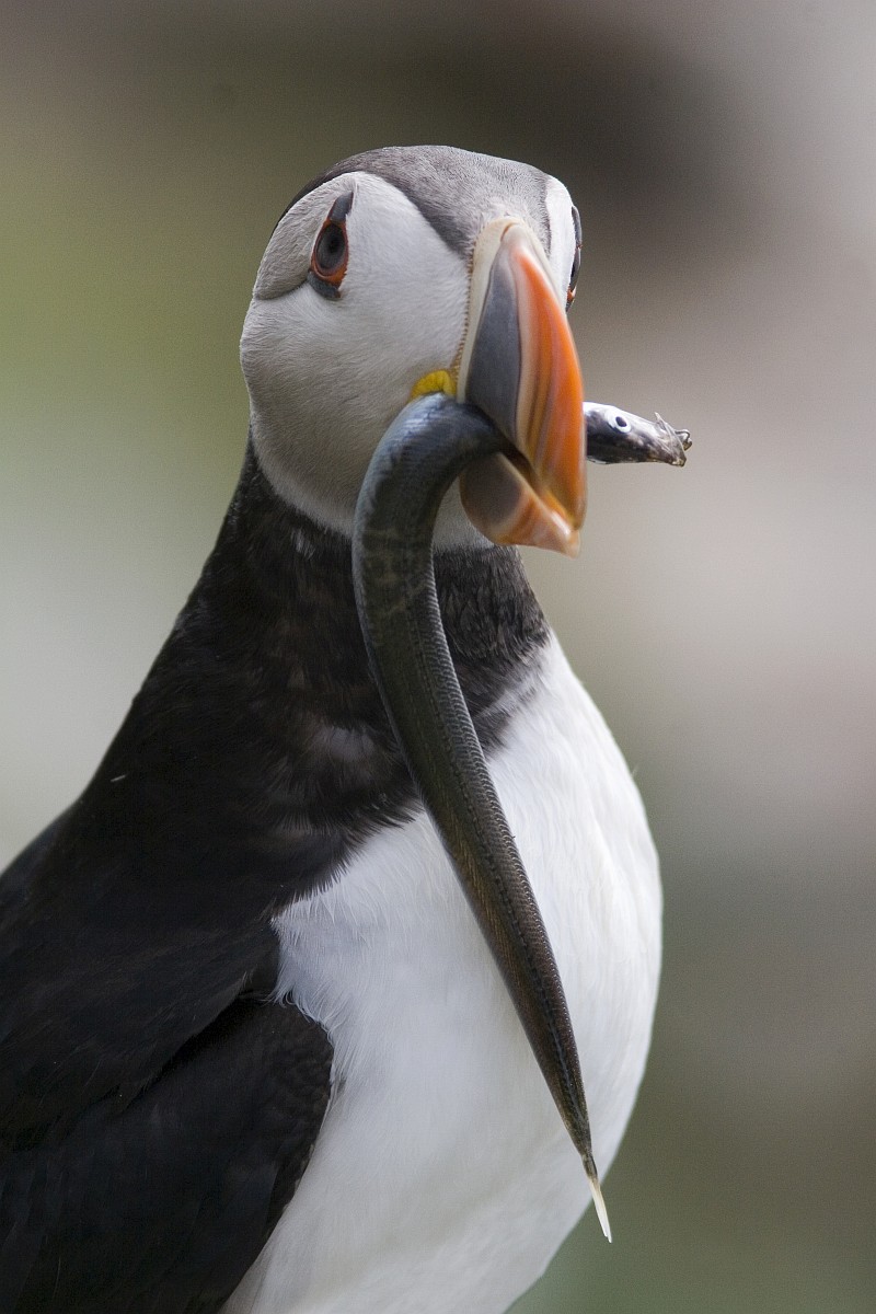 Fratercula arctica 67, Papagaaduiker, Saxifraga-Rudmer Zwerver.jpgPuffin with fish in beak Puffin (Fratercula arctica) with fish in beak underway to its nest in breeding colony on Isle of May, Scotland