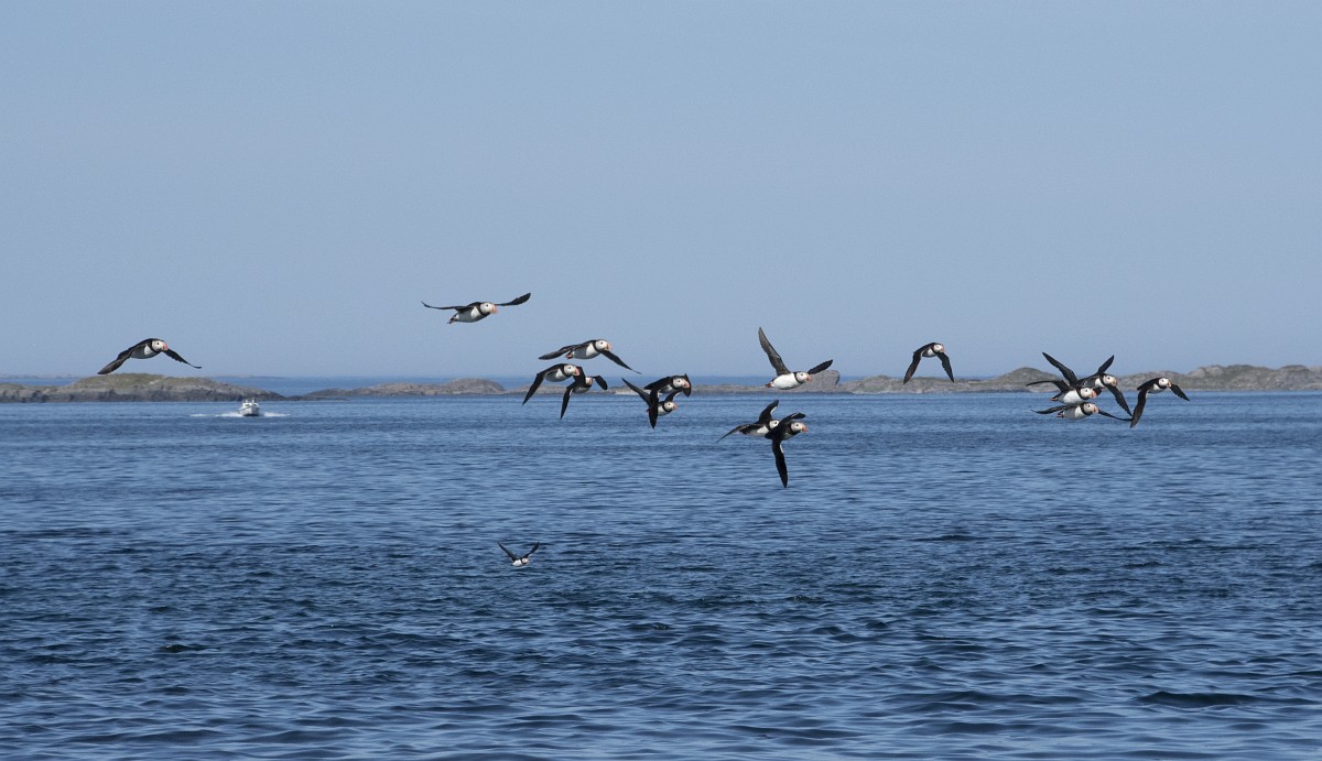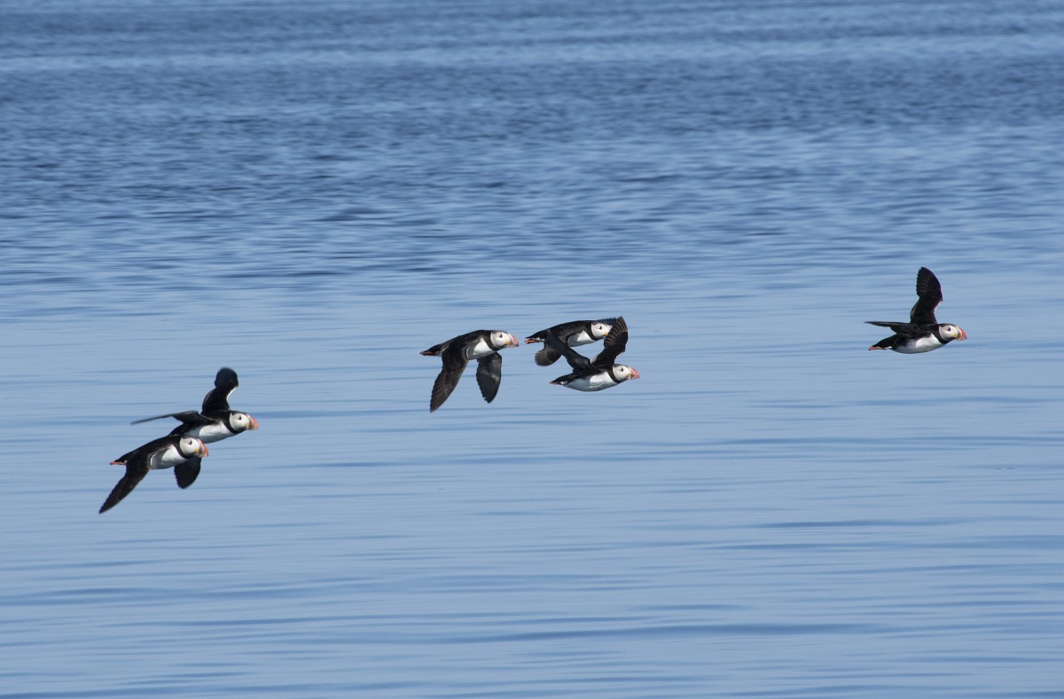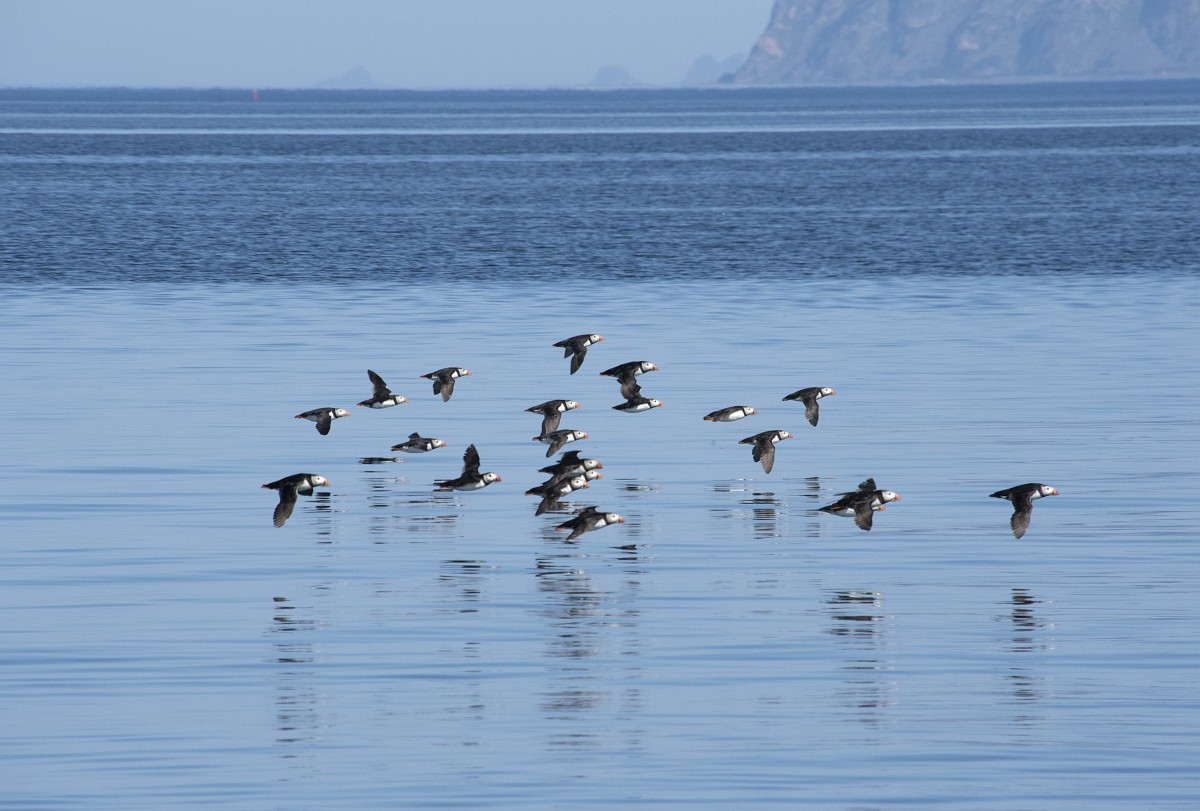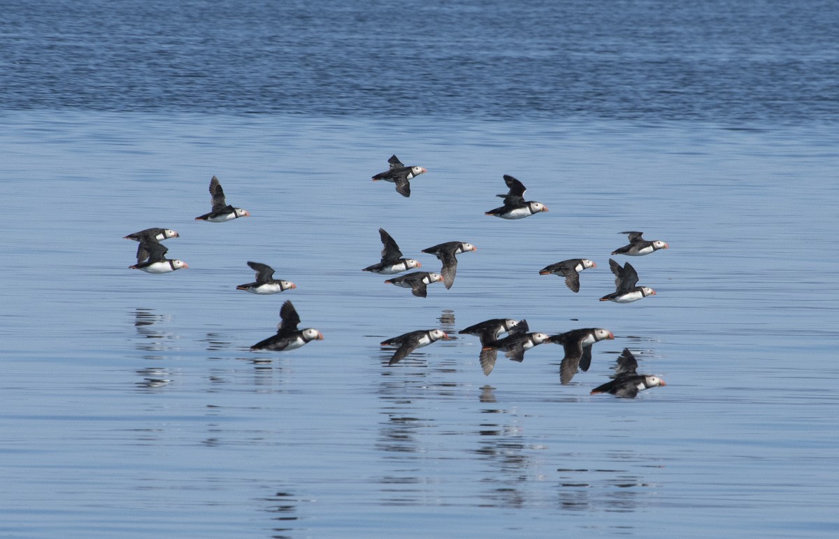 Fratercula arctica 65, Papagaaduiker, Saxifraga-Rudmer Zwerver.jpgFlying Puffin Puffin (Fratercula arctica) flying back to nesting colony with fish in beak to feed young on Isle of May, Scotland