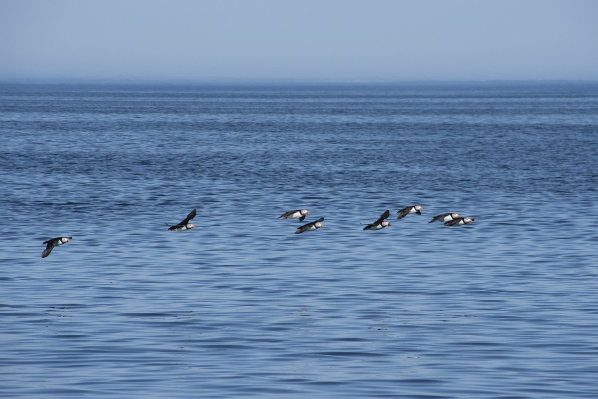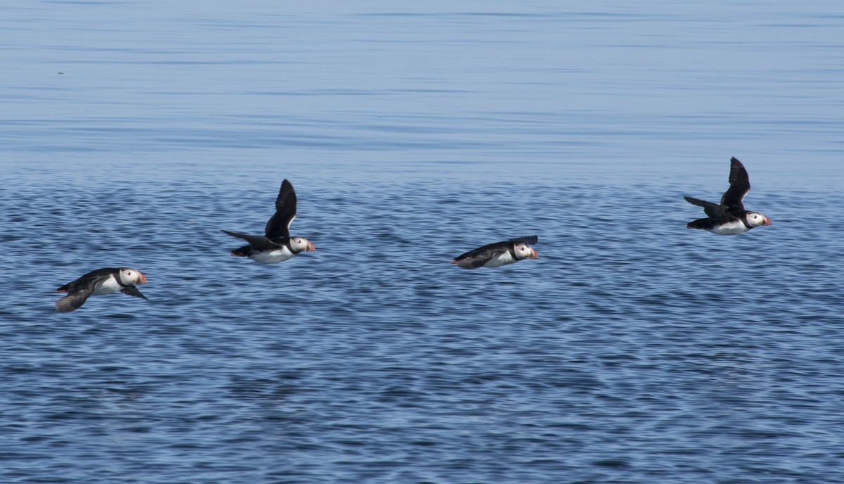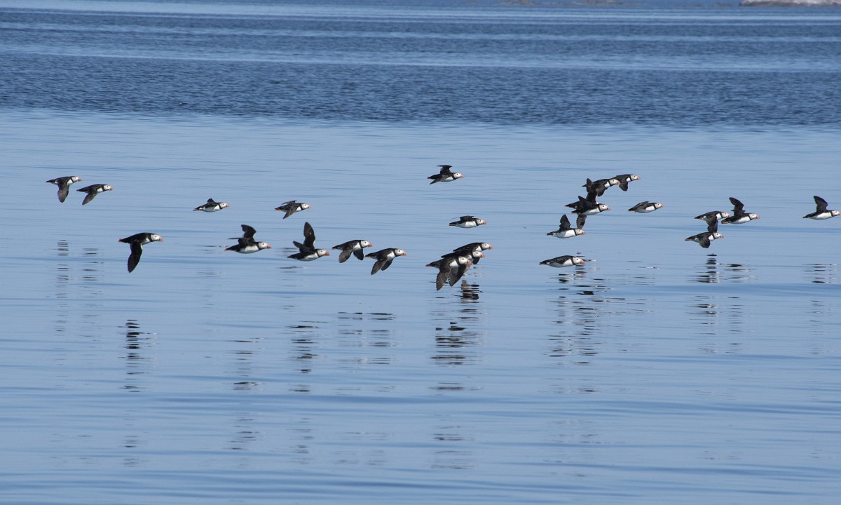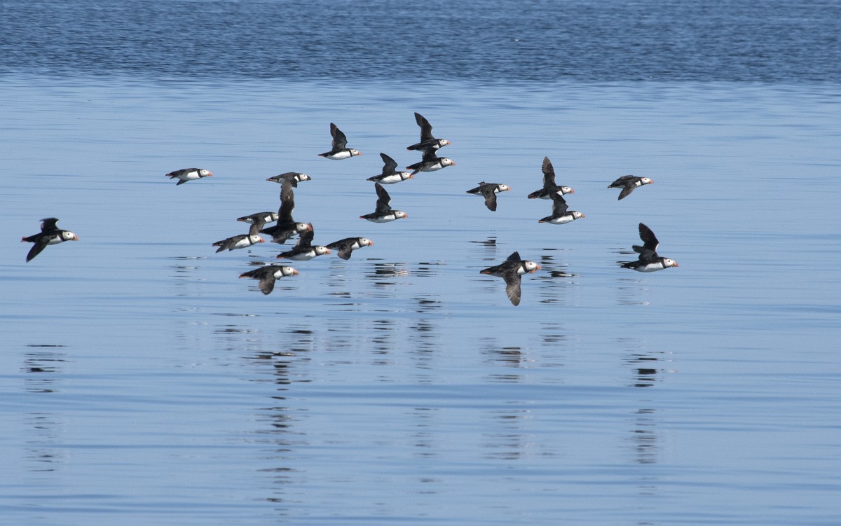 Fratercula arctica 65, Papagaaduiker, Saxifraga-Rudmer Zwerver.jpgFlying Puffin Puffin (Fratercula arctica) flying back to nesting colony with fish in beak to feed young on Isle of May, Scotland