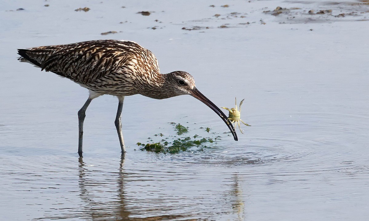 Numenius arquata 100, Wulp, Saxifraga-Rudmer Zwerver.jpg Eurasian curlew wading in tidal marsh waddensea Eurasian curlew or common curlew (Numenius arquata) stilt bird wading is shallow water of waddensea.Wader bird wildlife in nature scene. Netherlands