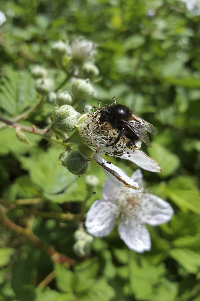 Bombus hortorum 5, Tuinhommel, Saxifraga-Roel Meijer.jpgBlack form of Garden bumblebee (Bombus hortorum) on old flower of Blackberry Black form of Garden bumblebee (Bombus hortorum) on old flower of Blackberry