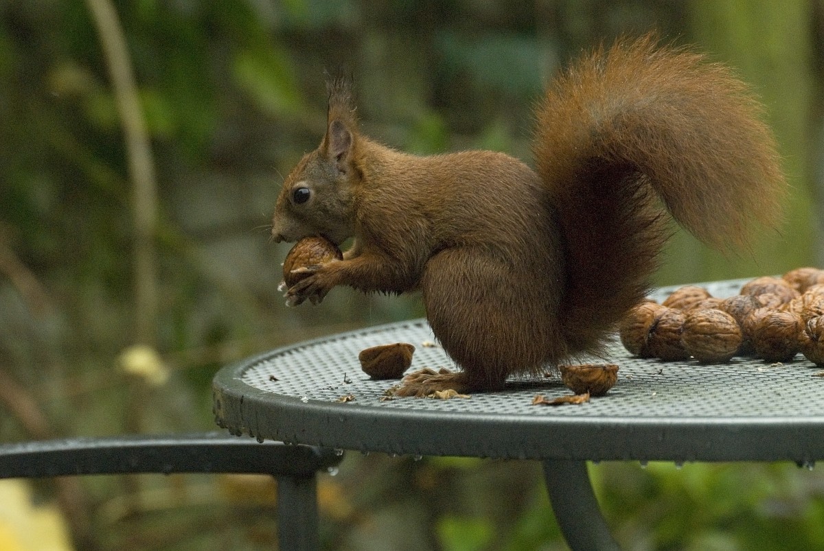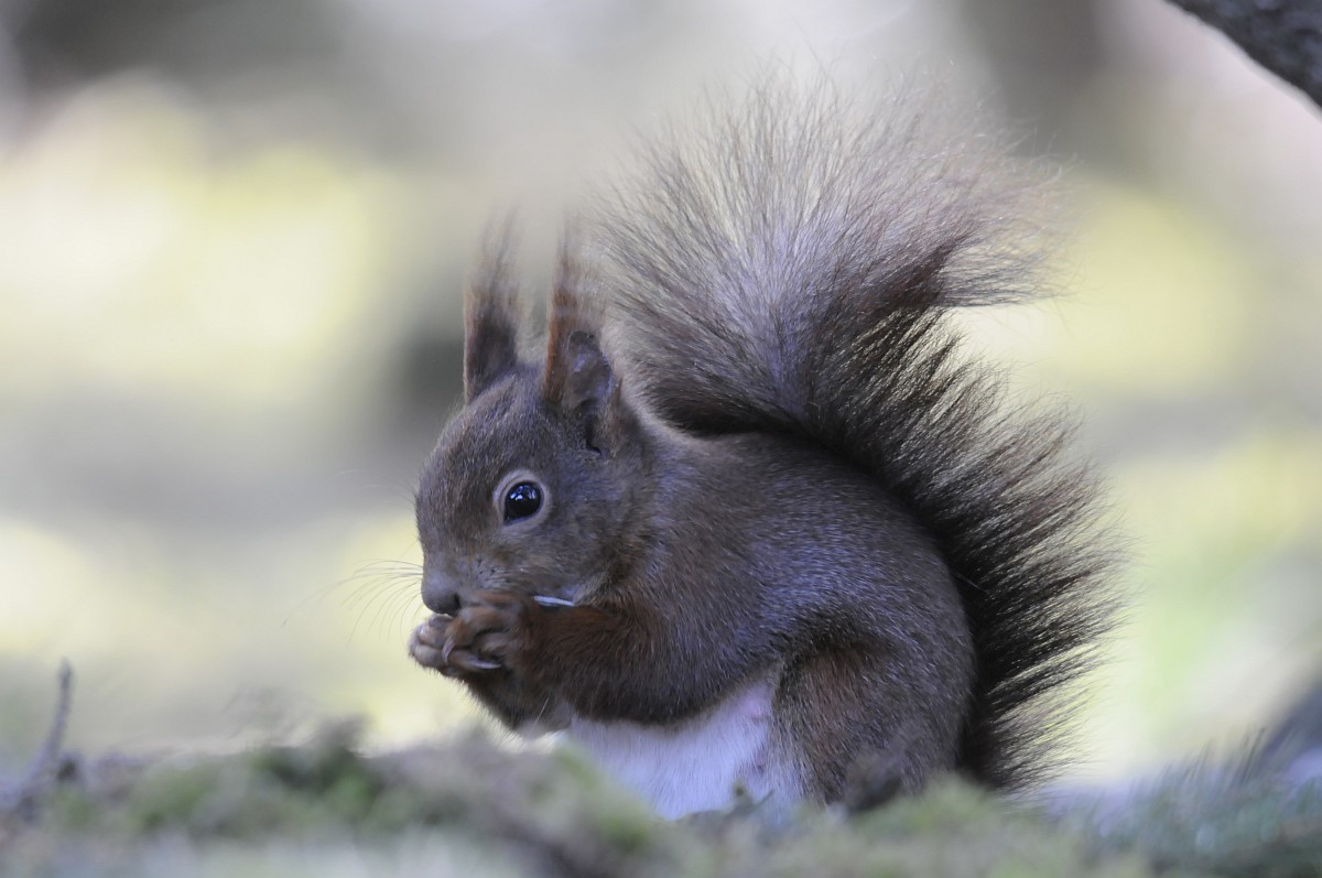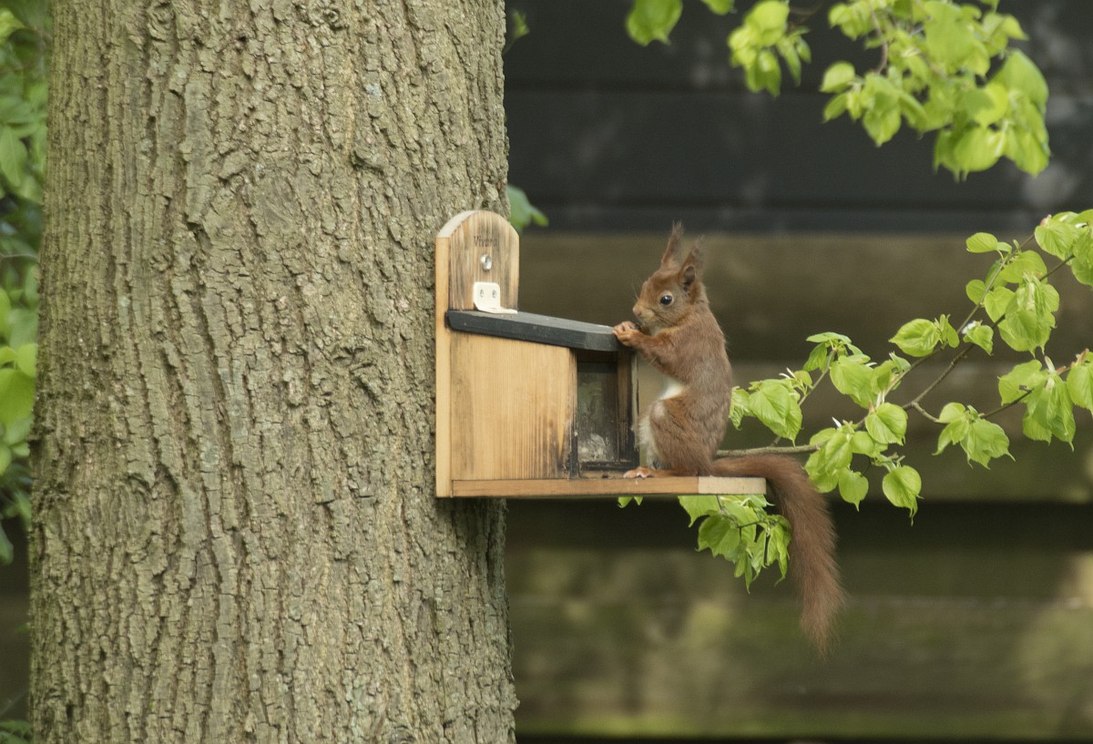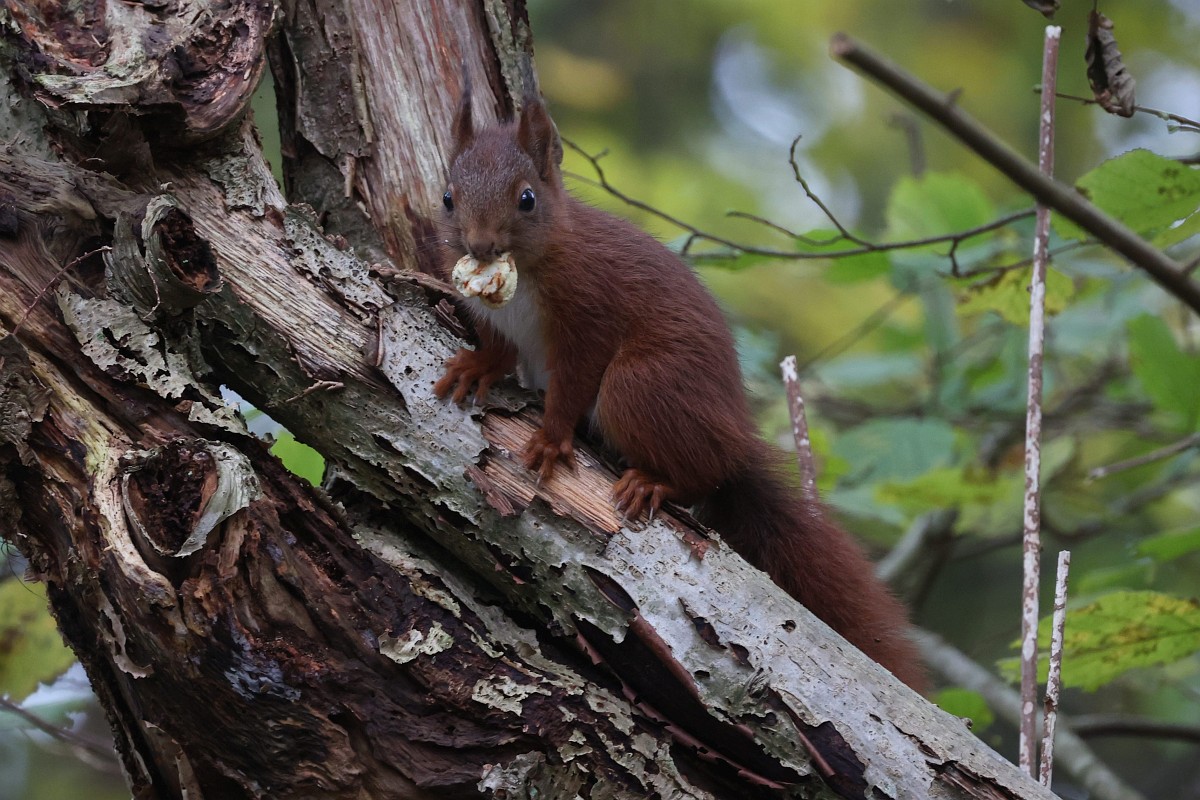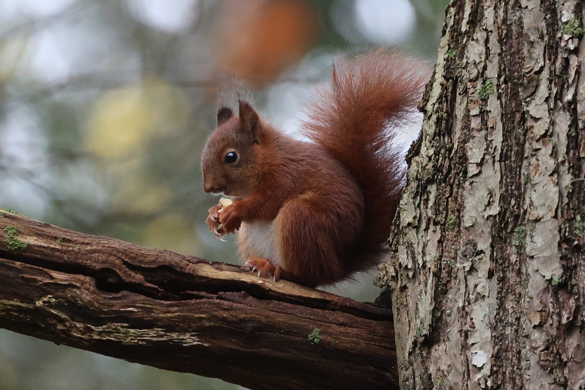 Sciurus vulgaris 200, Eekhoorn, Saxifraga-Rudmer Zwerver.jpgRed squirrel eating rom forelegs Red squirrel (Sciurus vulgaris) on tree trunk while animal is eating seeds from forelegs