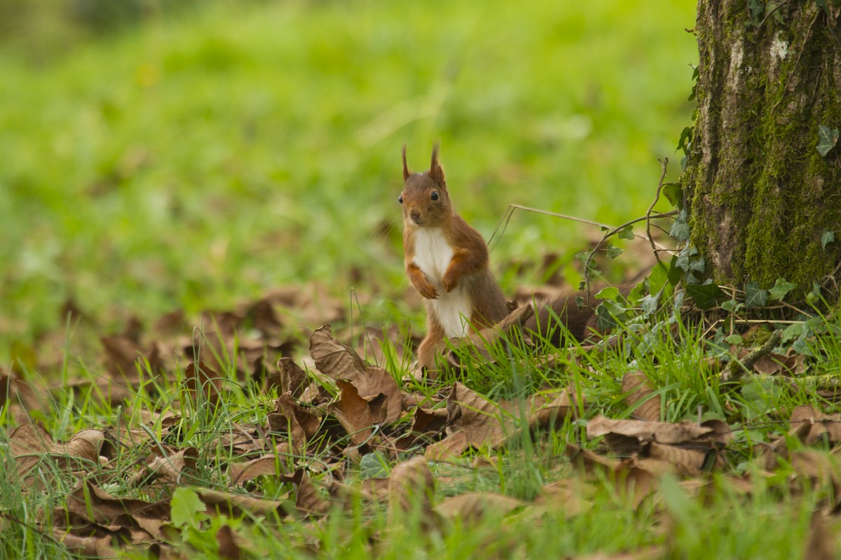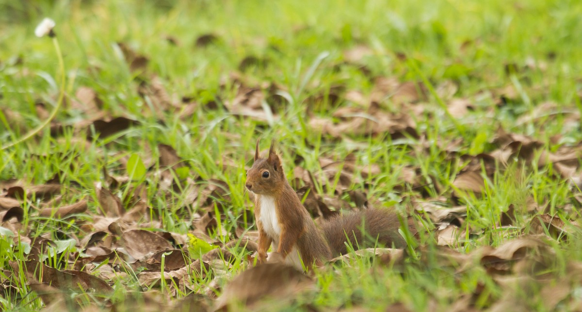 Sciurus vulgaris 201, Eekhoorn, Saxifraga-Rudmer Zwerver.jpgRed squirrel in lawn Red Squirrel (Sciurus vulgaris) standing upright in grass of backyard lawn and looking at camera