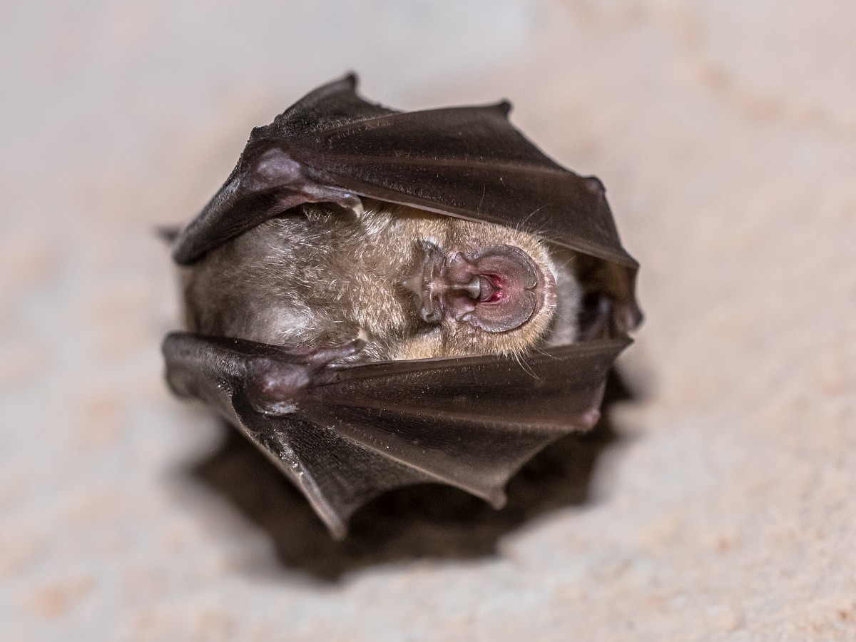 Rhinolophus ferrumequinum 5, Grote hoefijzerneus, Saxifraga-Rudmer Zwerver.jpgGreater horseshoe bat hanging folded Greater horseshoe bat (Rhinolophus ferrumequinum) sleeping with folded wings and hanging on ceiling of cave in Spanish Pyrenees, Aragon, Spain. April.