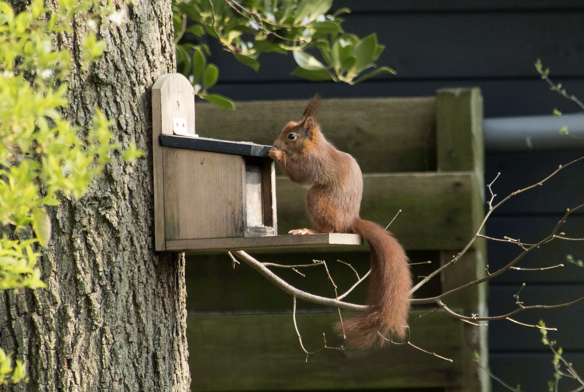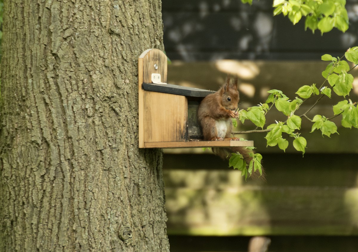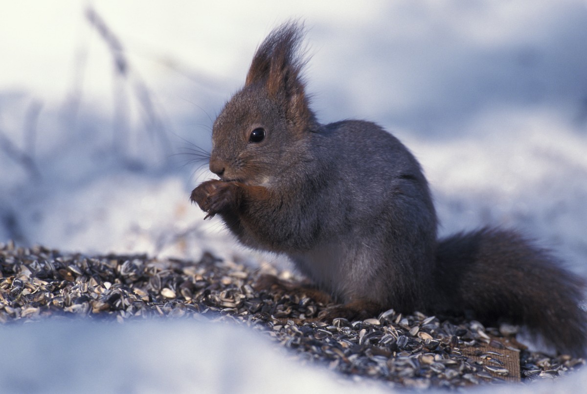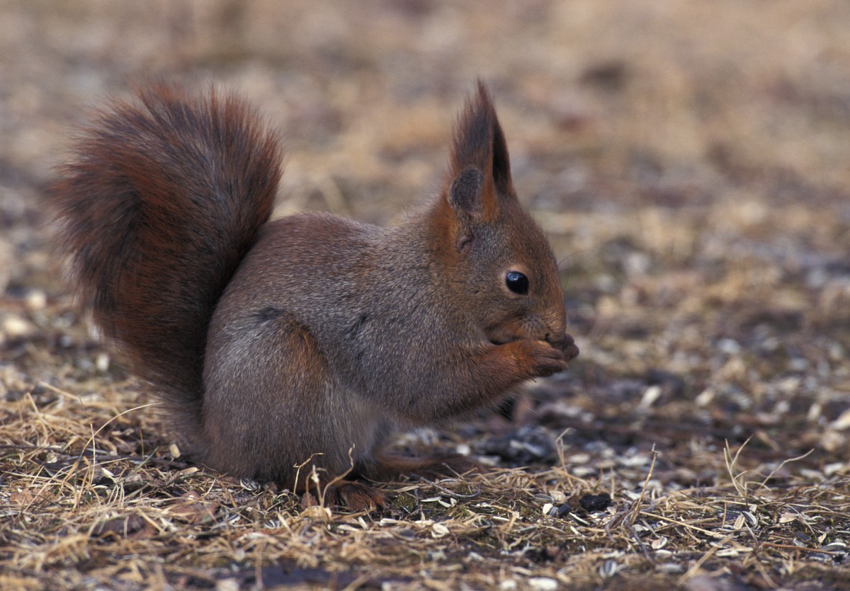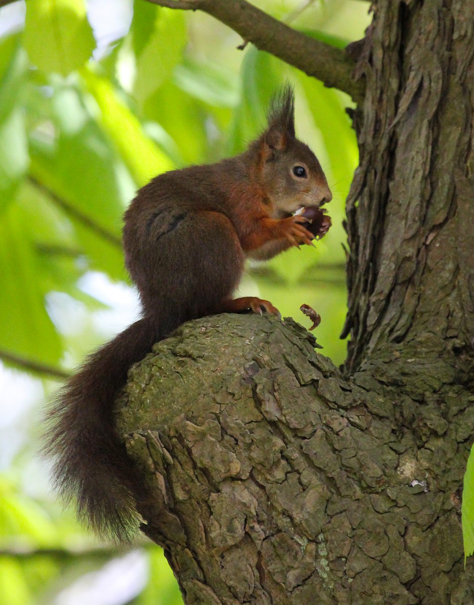Sciurus vulgaris 200, Eekhoorn, Saxifraga-Rudmer Zwerver.jpgRed squirrel eating rom forelegs Red squirrel (Sciurus vulgaris) on tree trunk while animal is eating seeds from forelegs
