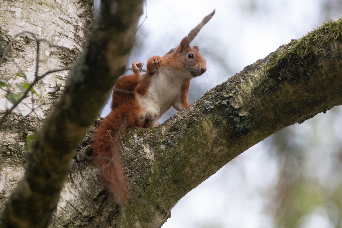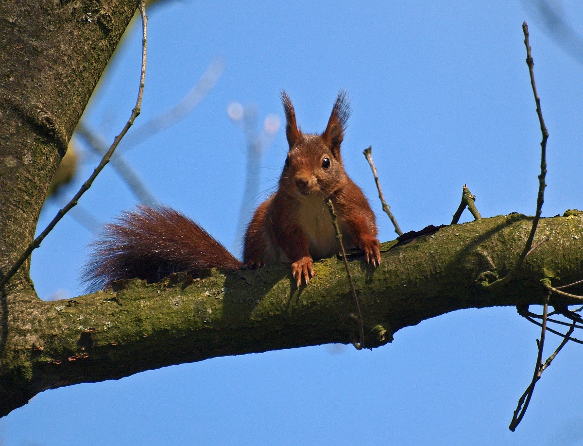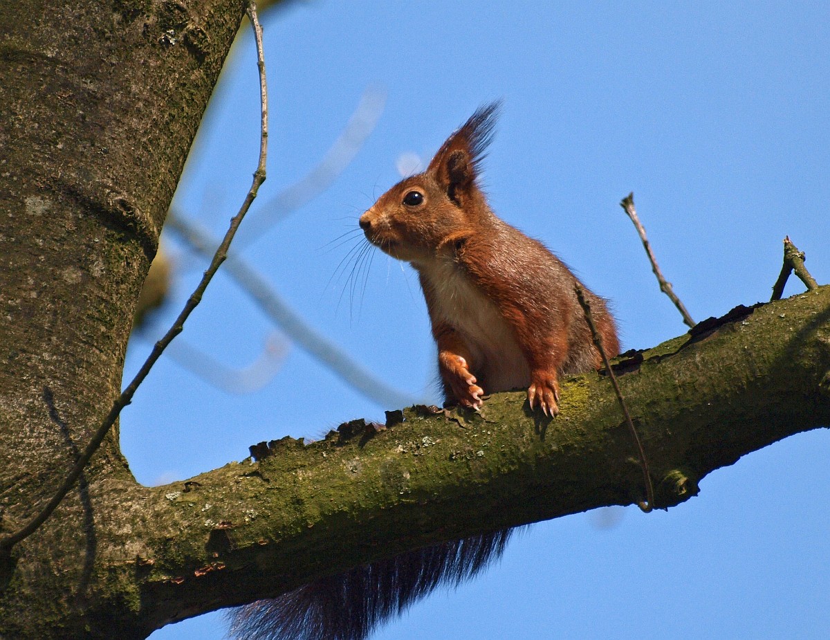 Sciurus vulgaris 202, Eekhoorn, Saxifraga-Rudmer Zwerver.jpgRed squirrel on branch Red squirrel (Sciurus vulgaris) sitting on hind legs on branch while animal is looking at camera