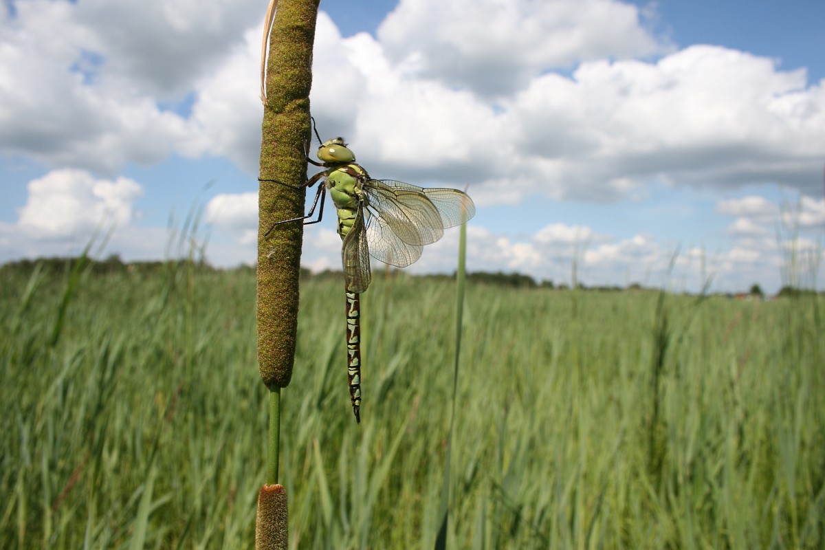 Aeshna viridis 11, Groene glazenmaker, Saxifraga-Rudmer Zwerver.jpgDragonfly Resting on a Leaf Green Hawker Dragonfly (Aeshna viridis) Warming its Wings in the Early Morning Sun