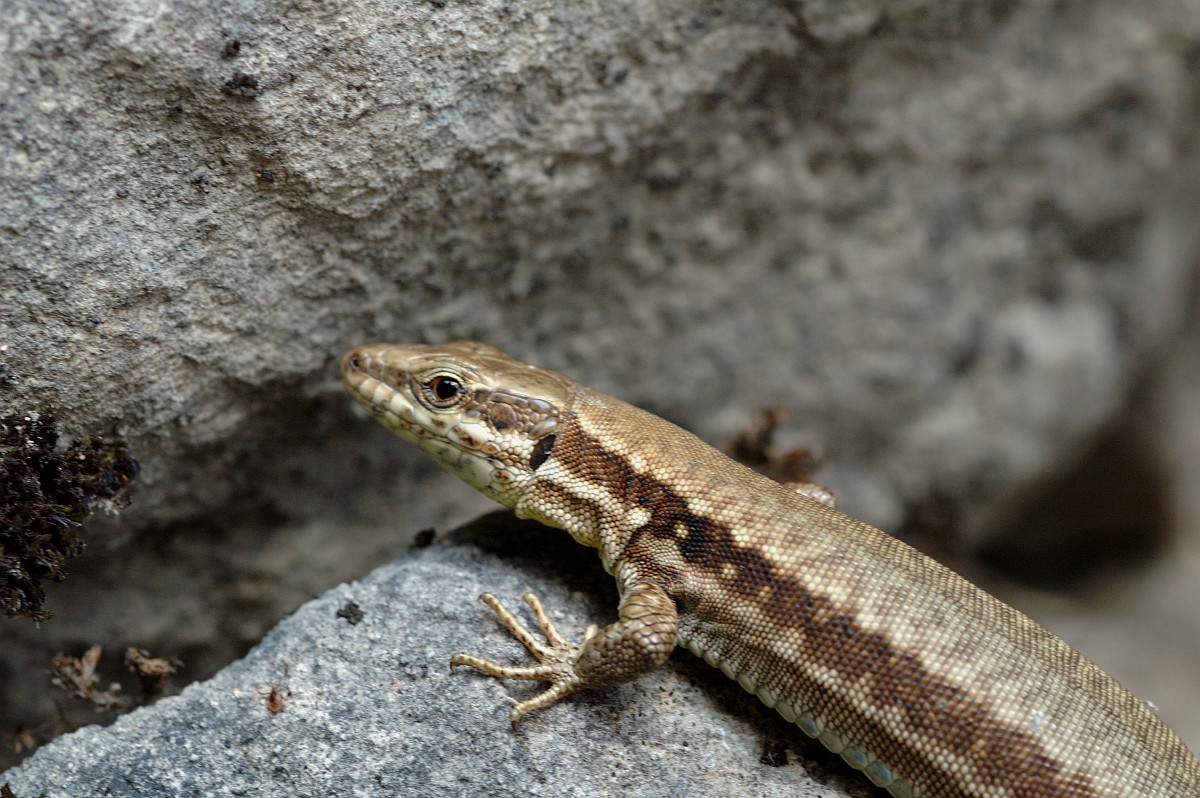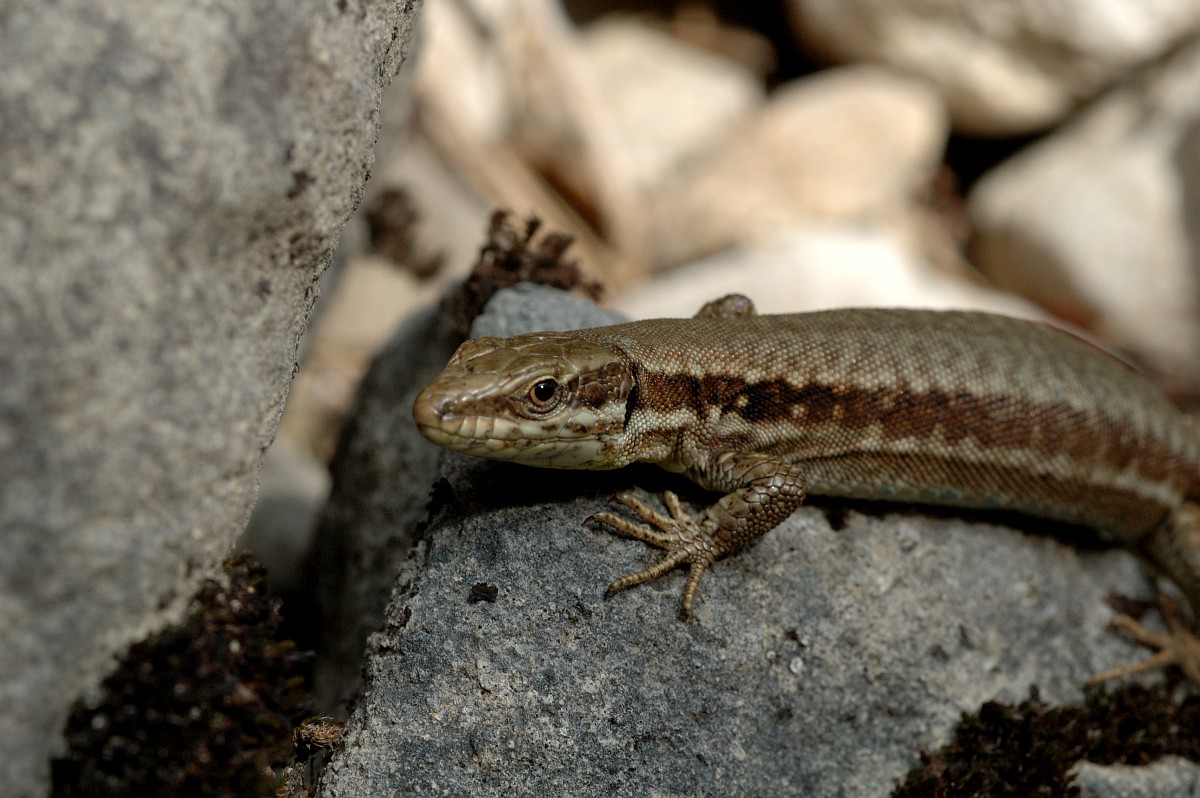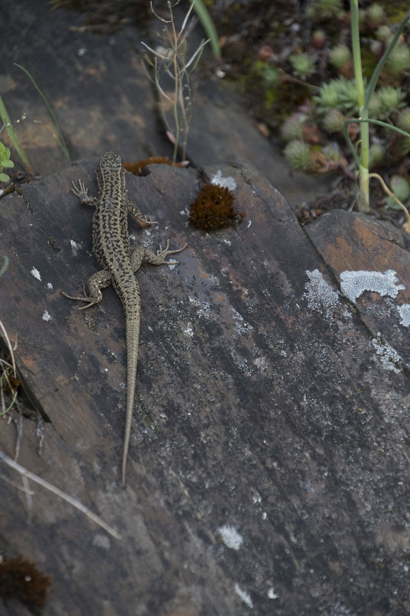 Podarcis muralis 107, Muurhagedis, Saxifraga-Rudmer Zwerver.jpgCommon wall lizard with prey Italian common wall lizard (Podarcis muralis) with prey on a stone wall in Tuscany, Italy, April.