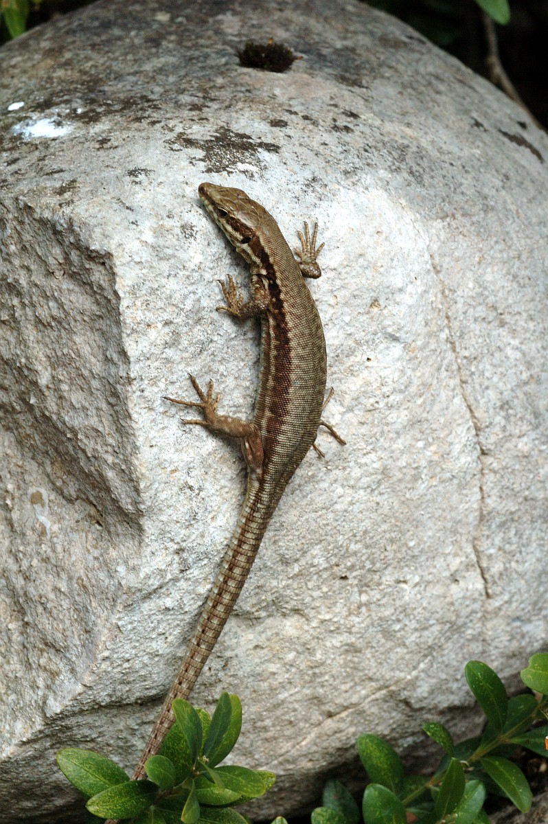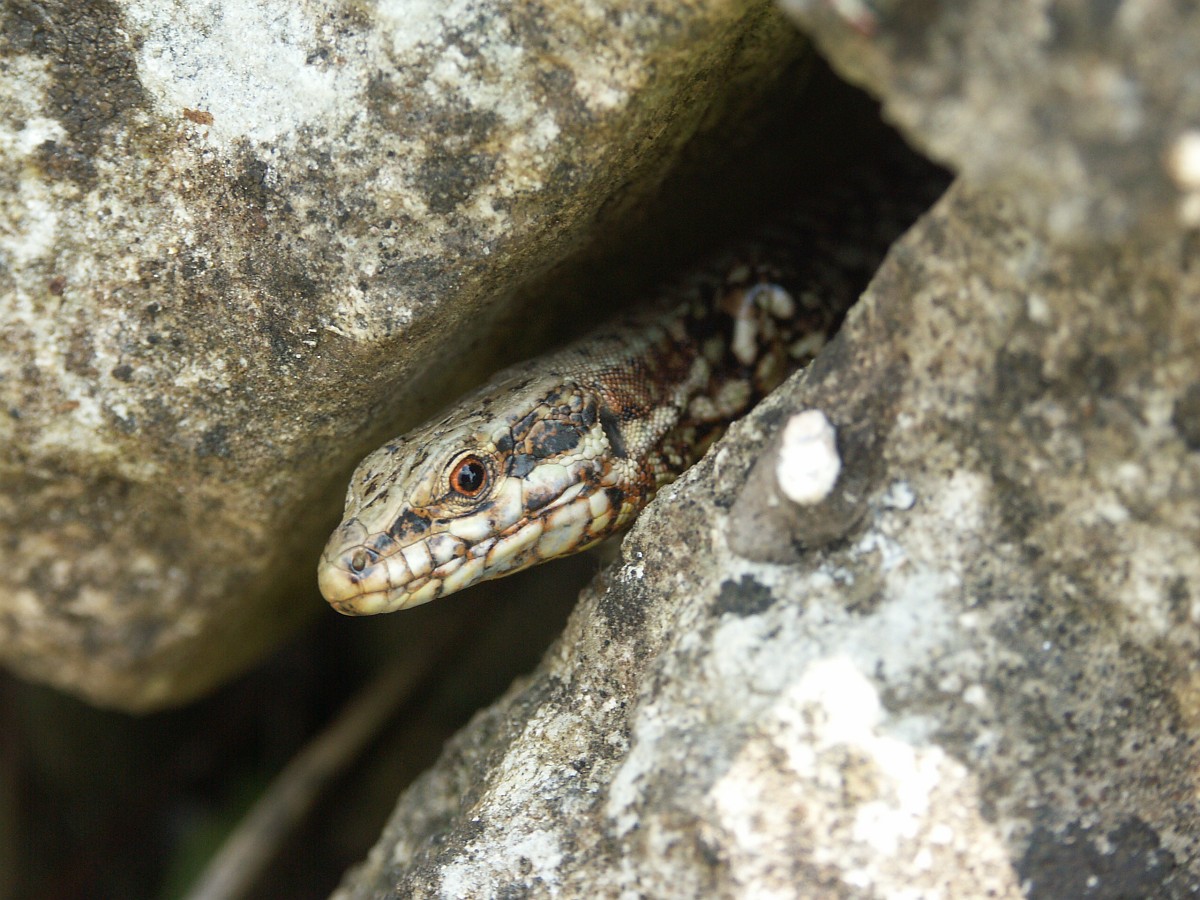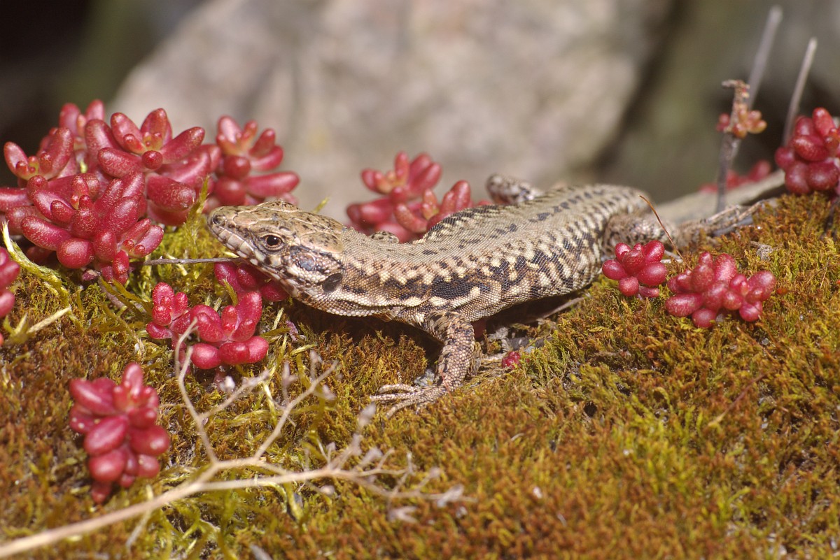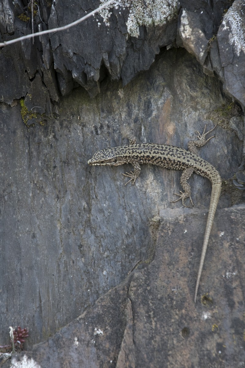 Podarcis muralis 107, Muurhagedis, Saxifraga-Rudmer Zwerver.jpgCommon wall lizard with prey Italian common wall lizard (Podarcis muralis) with prey on a stone wall in Tuscany, Italy, April.