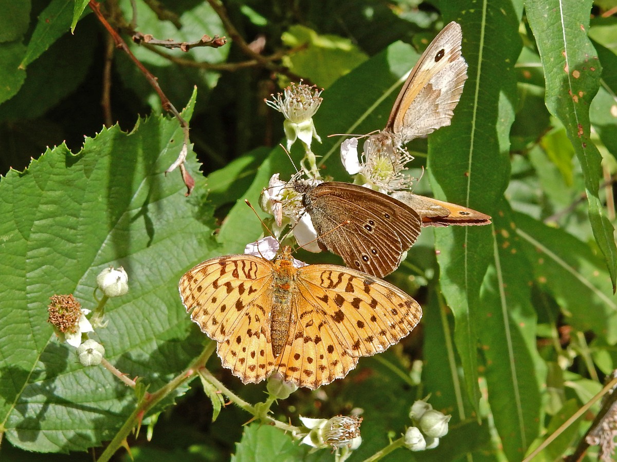Brenthis daphne 56, Braamparelmoervlinder, Saxifraga-Bart Vastenhouw Brenthis daphne 57, Braamparelmoervlinder, Saxifraga-Bart Vastenhouw Brenthis daphne 58, Braamparelmoervlinder, Saxifraga-Bart Vastenhouw Brenthis daphne, 42, Braamparelmoervlinder, on Rubus, with Maniola jurtina and Aphantopus hyperanthus, Saxifraga-Kars V