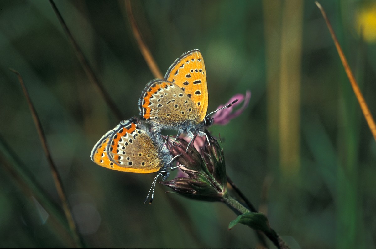Lycaena helle 7, Blauwe vuurvlinder, Saxifraga-Rudmer Zwerver.jpg Violet copper in germany Two male Violet Copper Butterfly (Lycaena helle) with iridescent blue on their wings