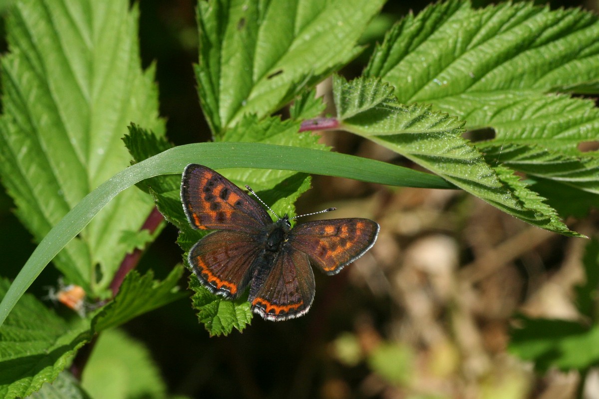 Lycaena helle 7, Blauwe vuurvlinder, Saxifraga-Rudmer Zwerver.jpg Violet copper in germany Two male Violet Copper Butterfly (Lycaena helle) with iridescent blue on their wings