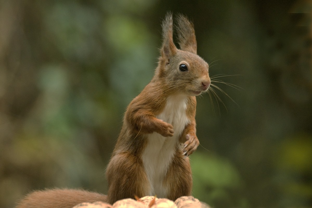 Sciurus vulgaris 203, Eekhoorn, Saxifraga-Rudmer Zwerver.jpgRed squirrel portrait Red squirrel (Sciurus vulgaris) close up portrait of animal eating nut against green background