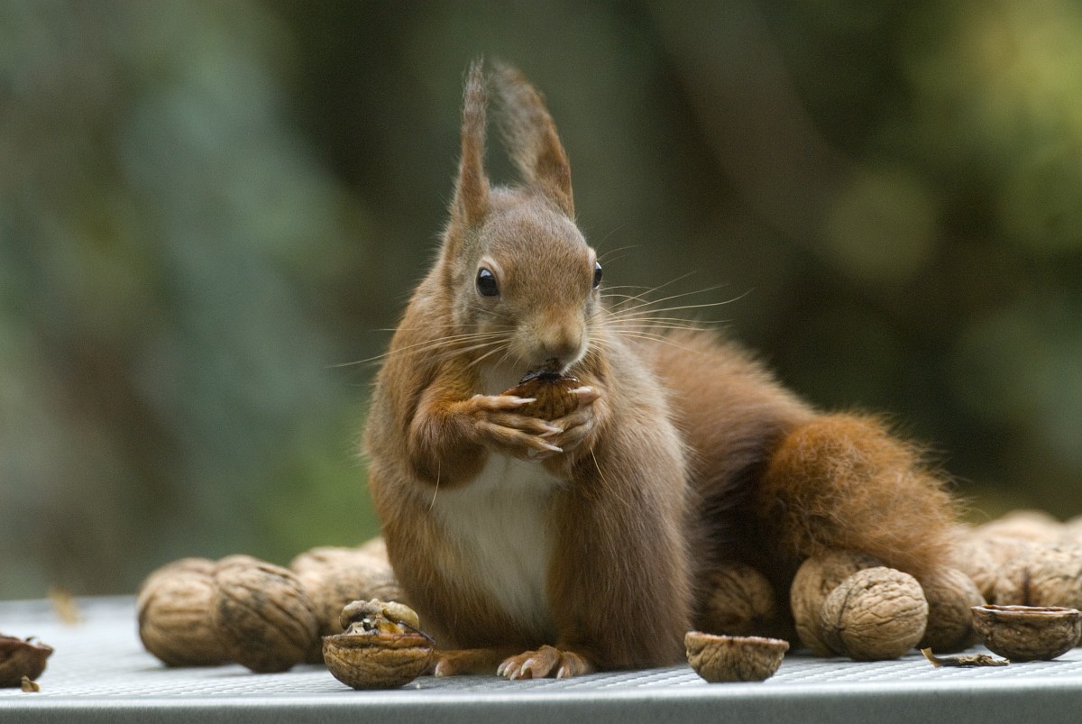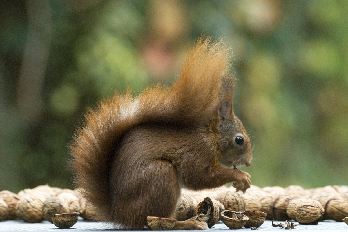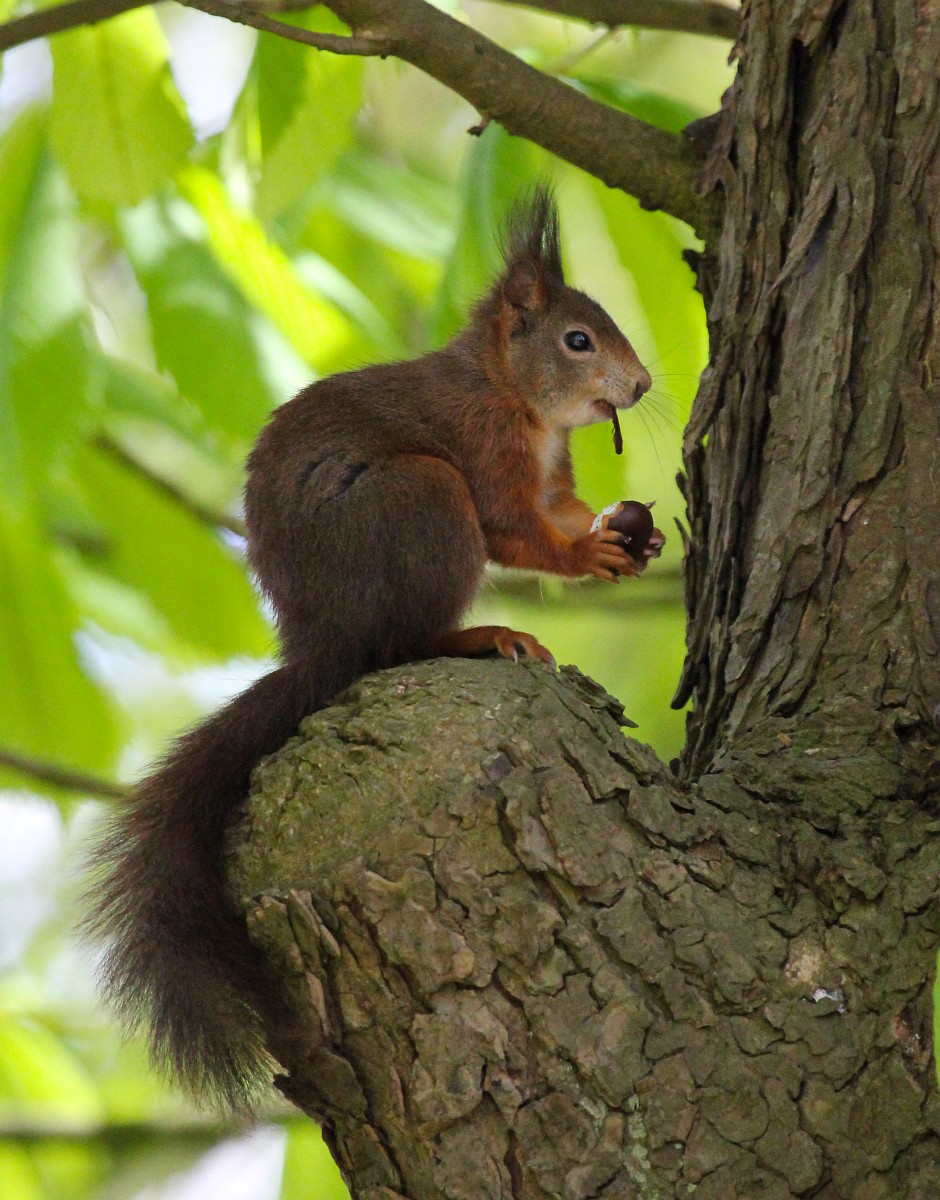 Sciurus vulgaris 200, Eekhoorn, Saxifraga-Rudmer Zwerver.jpgRed squirrel eating rom forelegs Red squirrel (Sciurus vulgaris) on tree trunk while animal is eating seeds from forelegs