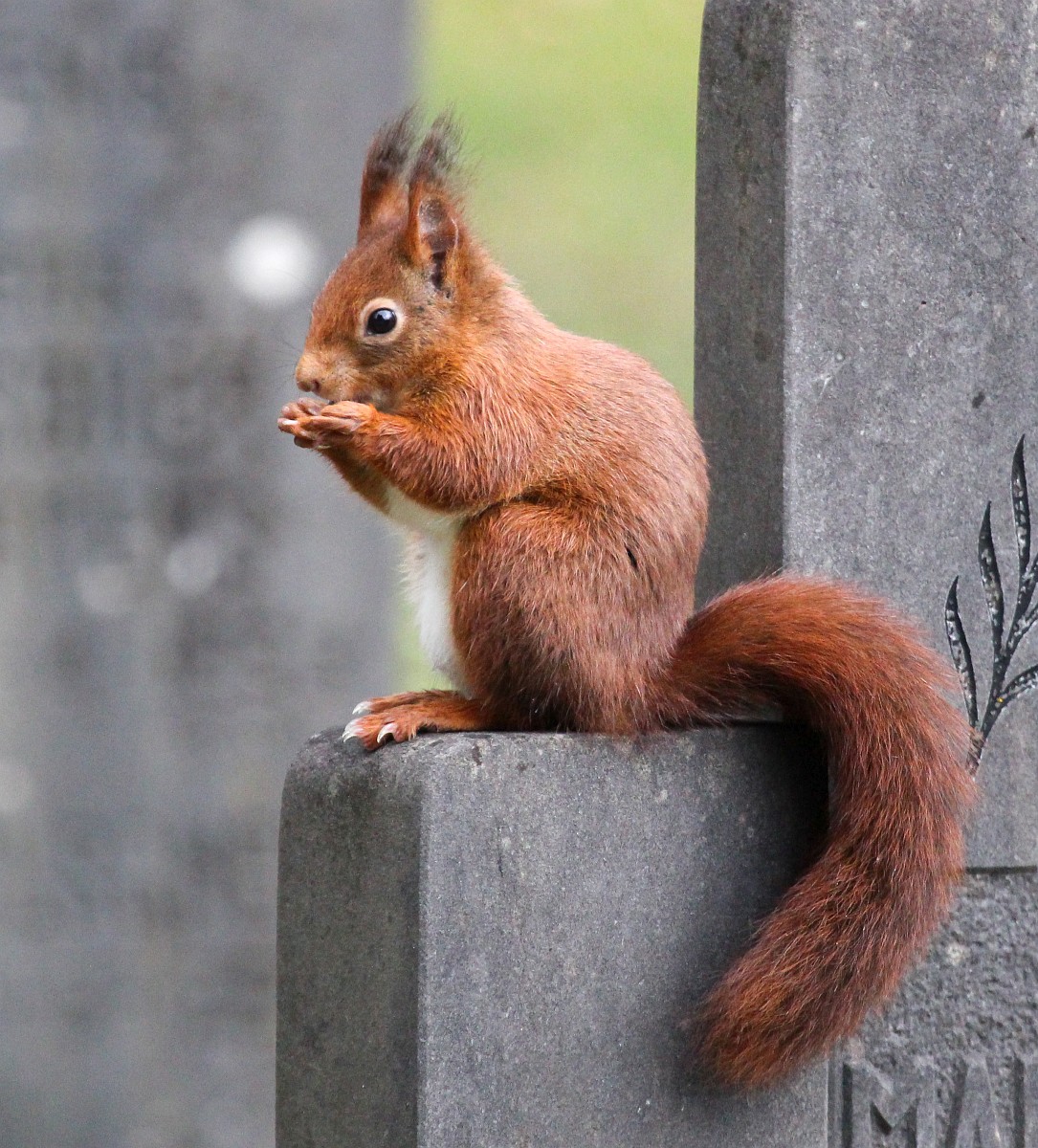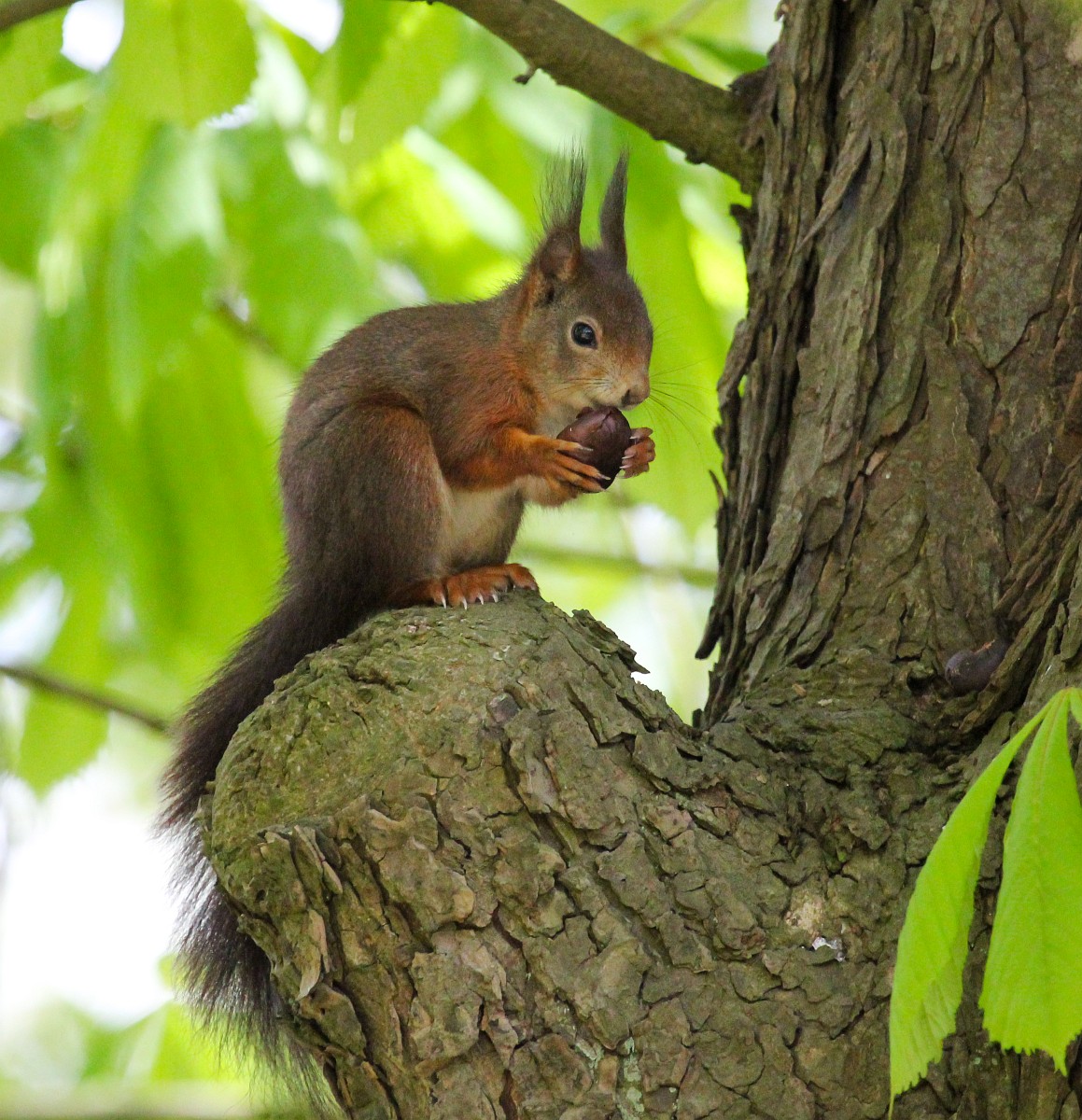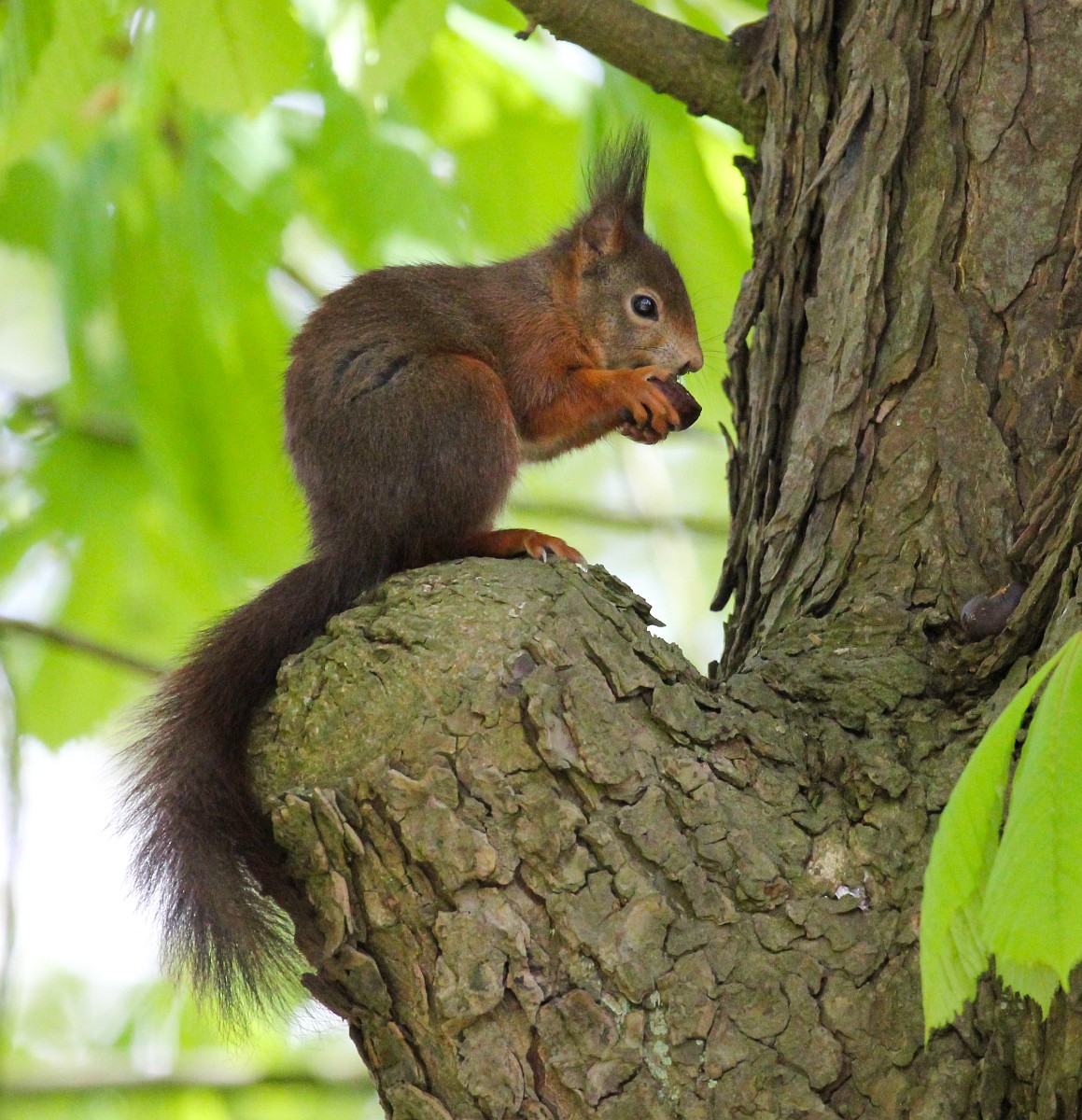 Sciurus vulgaris 200, Eekhoorn, Saxifraga-Rudmer Zwerver.jpgRed squirrel eating rom forelegs Red squirrel (Sciurus vulgaris) on tree trunk while animal is eating seeds from forelegs