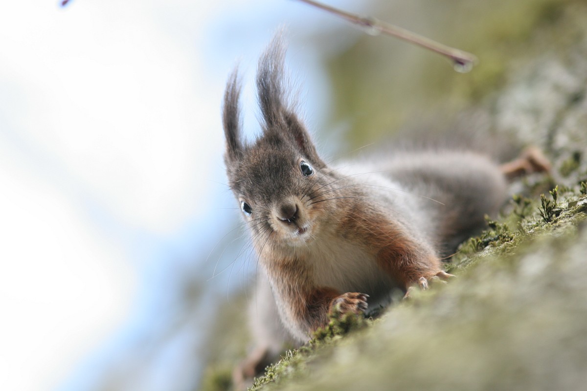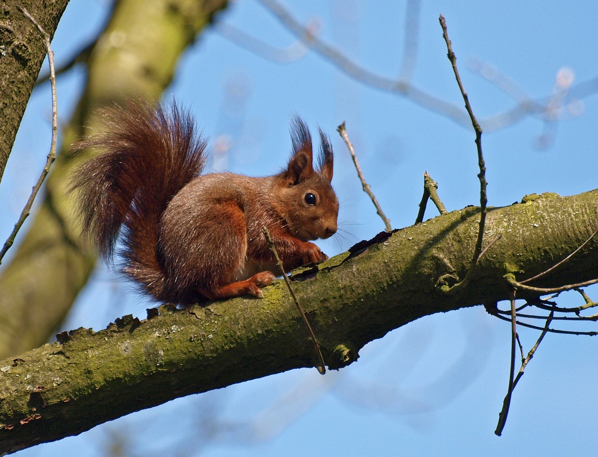 Sciurus vulgaris 202, Eekhoorn, Saxifraga-Rudmer Zwerver.jpgRed squirrel on branch Red squirrel (Sciurus vulgaris) sitting on hind legs on branch while animal is looking at camera