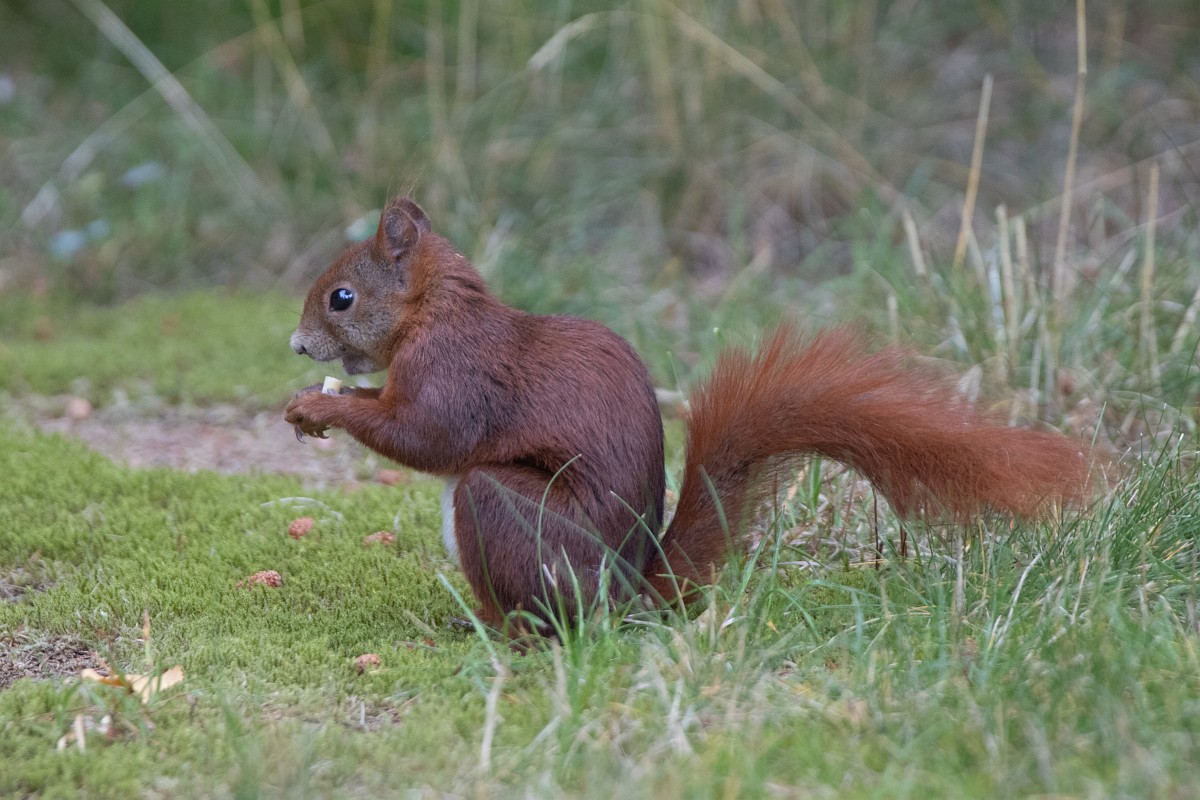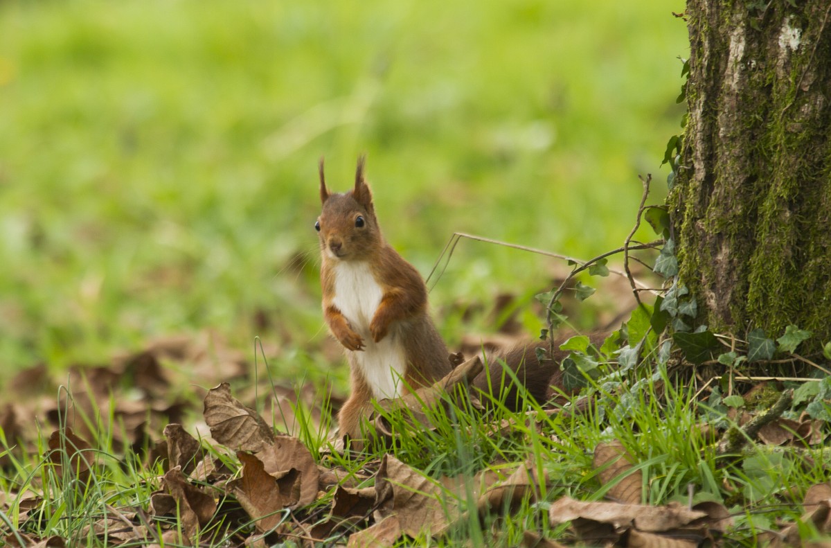 Sciurus vulgaris 201, Eekhoorn, Saxifraga-Rudmer Zwerver.jpgRed squirrel in lawn Red Squirrel (Sciurus vulgaris) standing upright in grass of backyard lawn and looking at camera