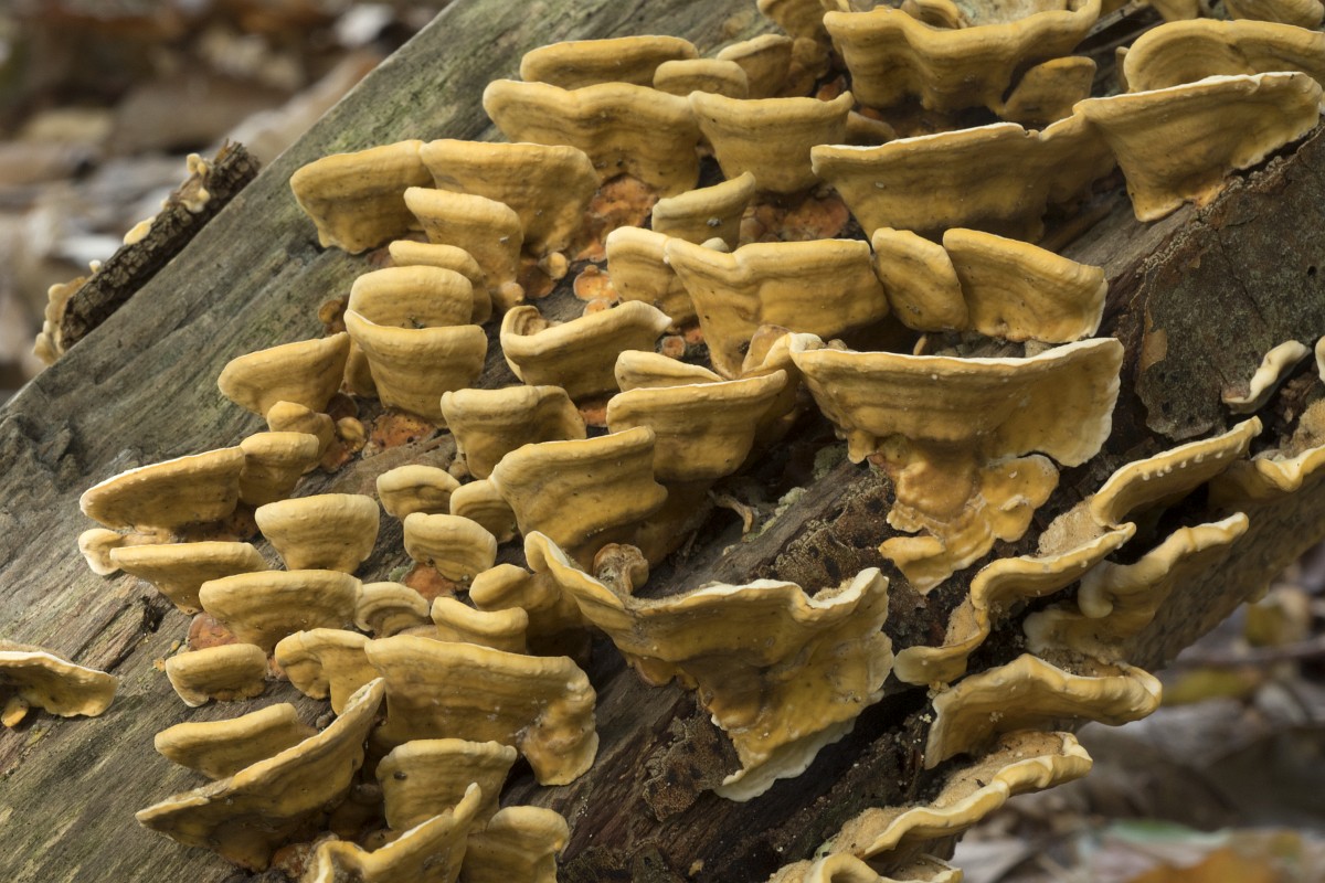 Stereum subtomentosum 6, Waaierkorstzwam, Saxifraga-Roel Meijer.jpgLeaf fungus Stereum submentosum on old trunk Leaf fungus Stereum submentosum on old trunk