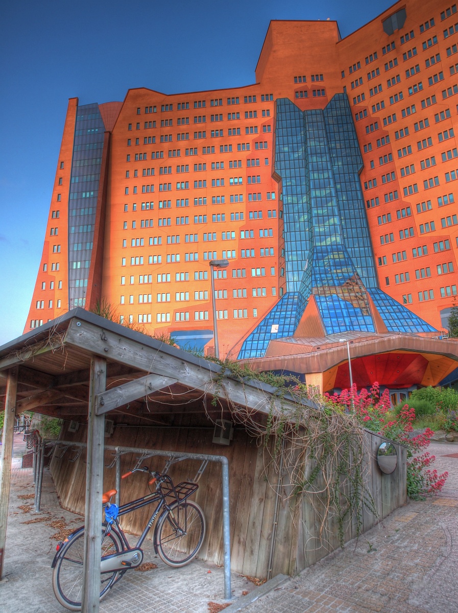 NL, Groningen, Groningen, Gasunie 1, Saxifraga-Rudmer Zwerver.jpgGasunie Groningen bike Organic architecture style office building seen from bicycle parking