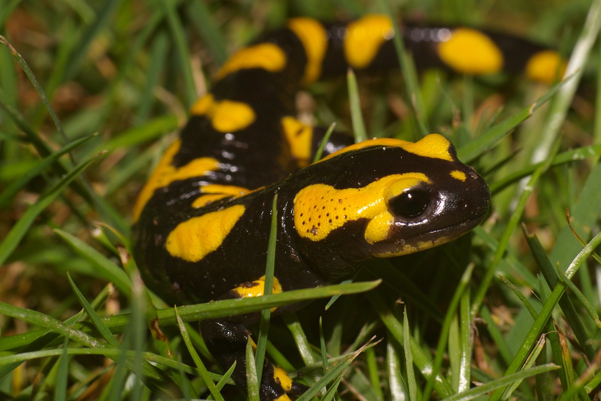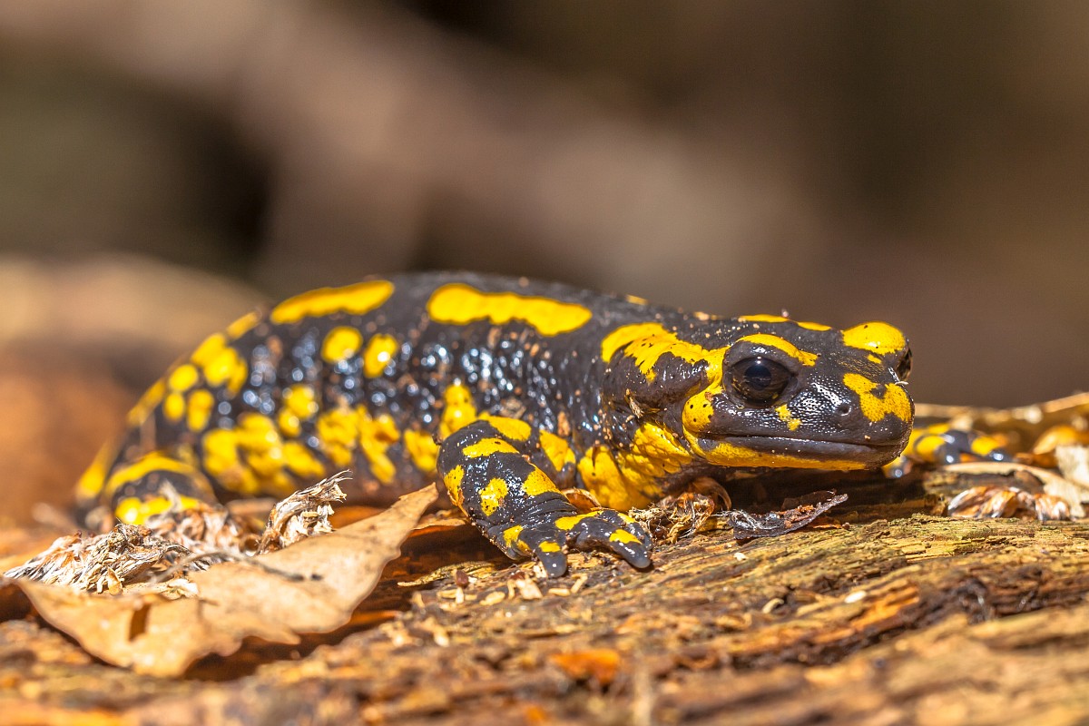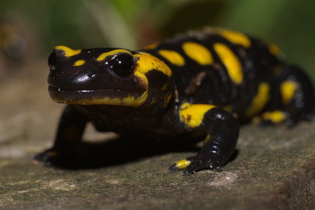 Salamandra salamandra 44, Vuursalamander, Saxifraga-Rudmer Zwerver.jpgClose up of Fire salamander newt in its natural habitat Fire salamander newt (Salamandre salamandre) live in central European deciduous forests and are declining amphibians in numbers